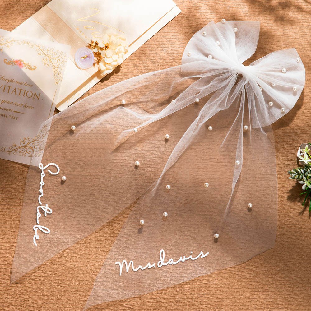 Give a personal touch to this veil by personalizing meaningful text. This personalization will make the bride-to-be feel extra special at her party or wedding.