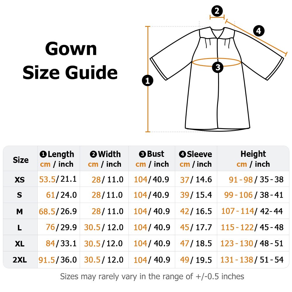 Measurement: Gown - XS, S, M, L, XL, 2XL Stole - 51.2" × 3.3"(130cm × 8.5cm)