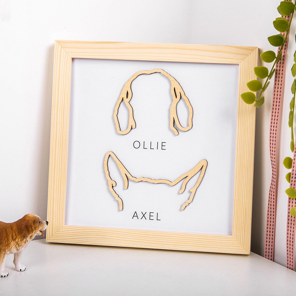 Manually process your photo into lines of a dog's ear shape and make it into a piece of art for dog lovers. Provide name/text customization, and support 1-4 dogs to display in the same frame. Because of its unique shape and ornamental value, it is a very Personalised home decoration for pet owners.