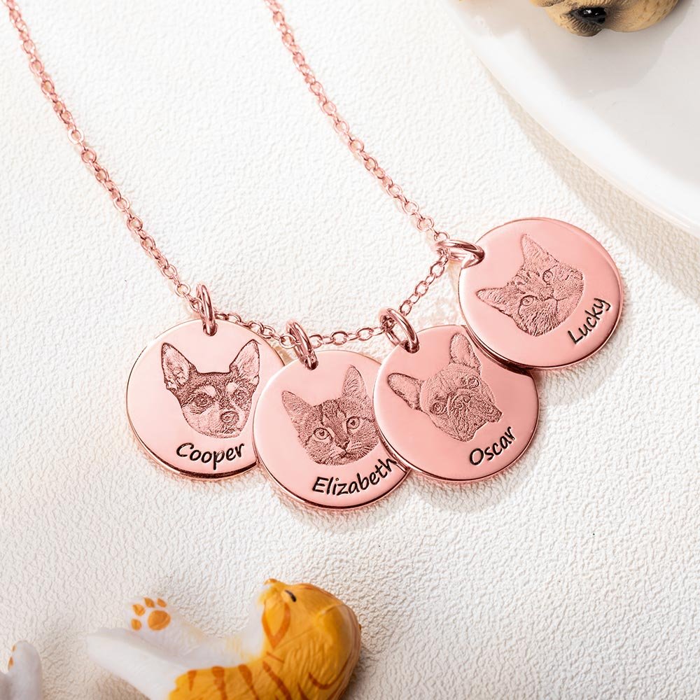 Personalised your necklace with a portrait of your pet’s face with their name underneath. You can choose 1-5 discs and select a cute icon from heart, paw, pet's nose, bone, and angel wings to make the necklace unique and special.