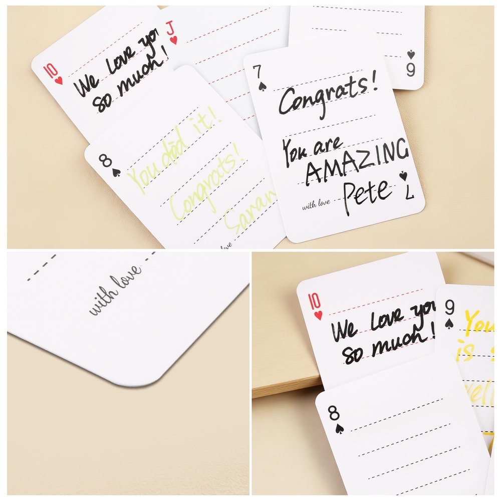 Arranging these playing cards on a welcome table during a lively graduation party allows guests to share their heartfelt advice. As family members gather in the living room after the official ceremony, they can pass around individual cards to write personalised messages. This functional set transforms a traditional deck into a nostalgic interactive guestbook, making it easy to display or revisit those touching sentiments during future alumni reunions.