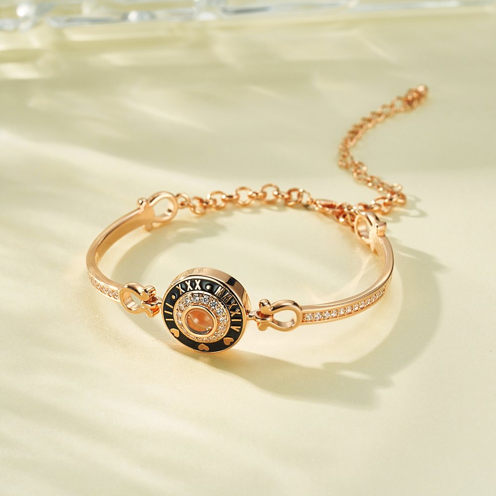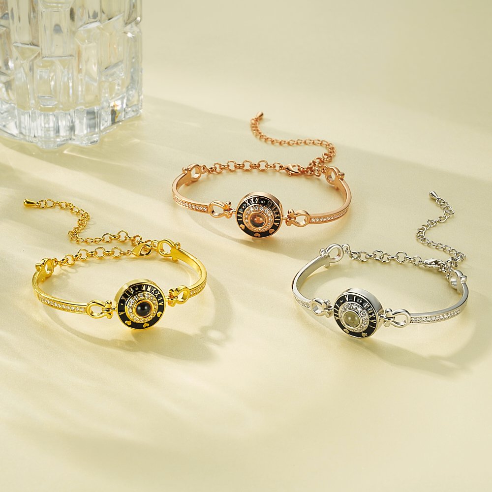 This bracelet's ability to project a Personalised photo onto any surface sets it apart. Unique heart pendant and chain design symbolize the eternal love between you and your loved ones.