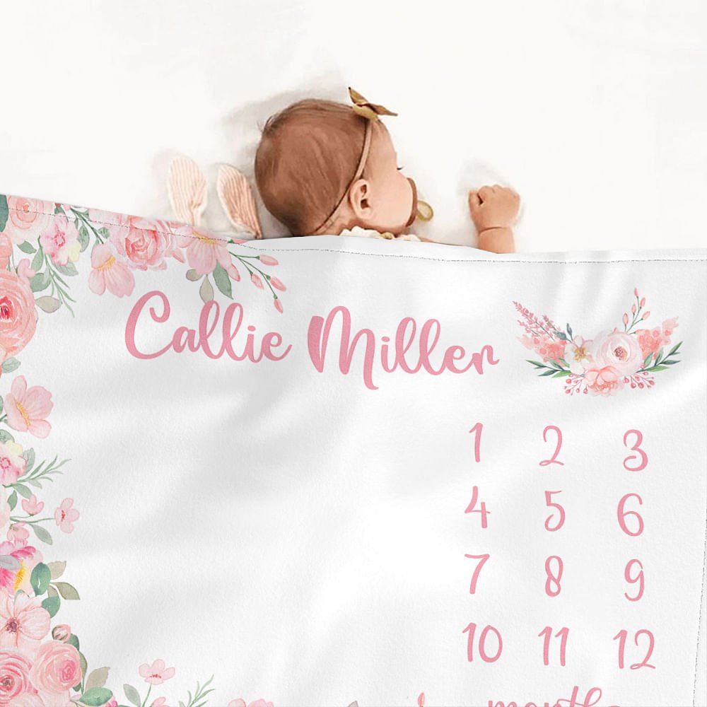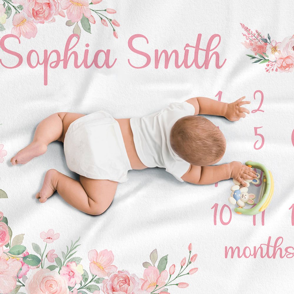 Customize this pink rose blanket with your baby girl's name to make it a unique keepsake to see your baby reach the next growth milestone individually. You can use this blanket to easily take unique photos of your baby's first year from 1 month to 12 months and beyond, capturing this special and adorable moment!