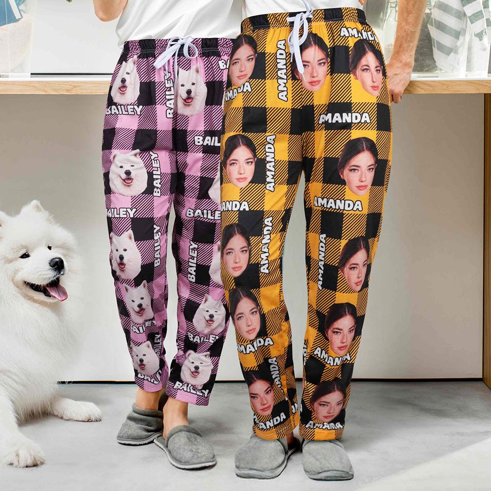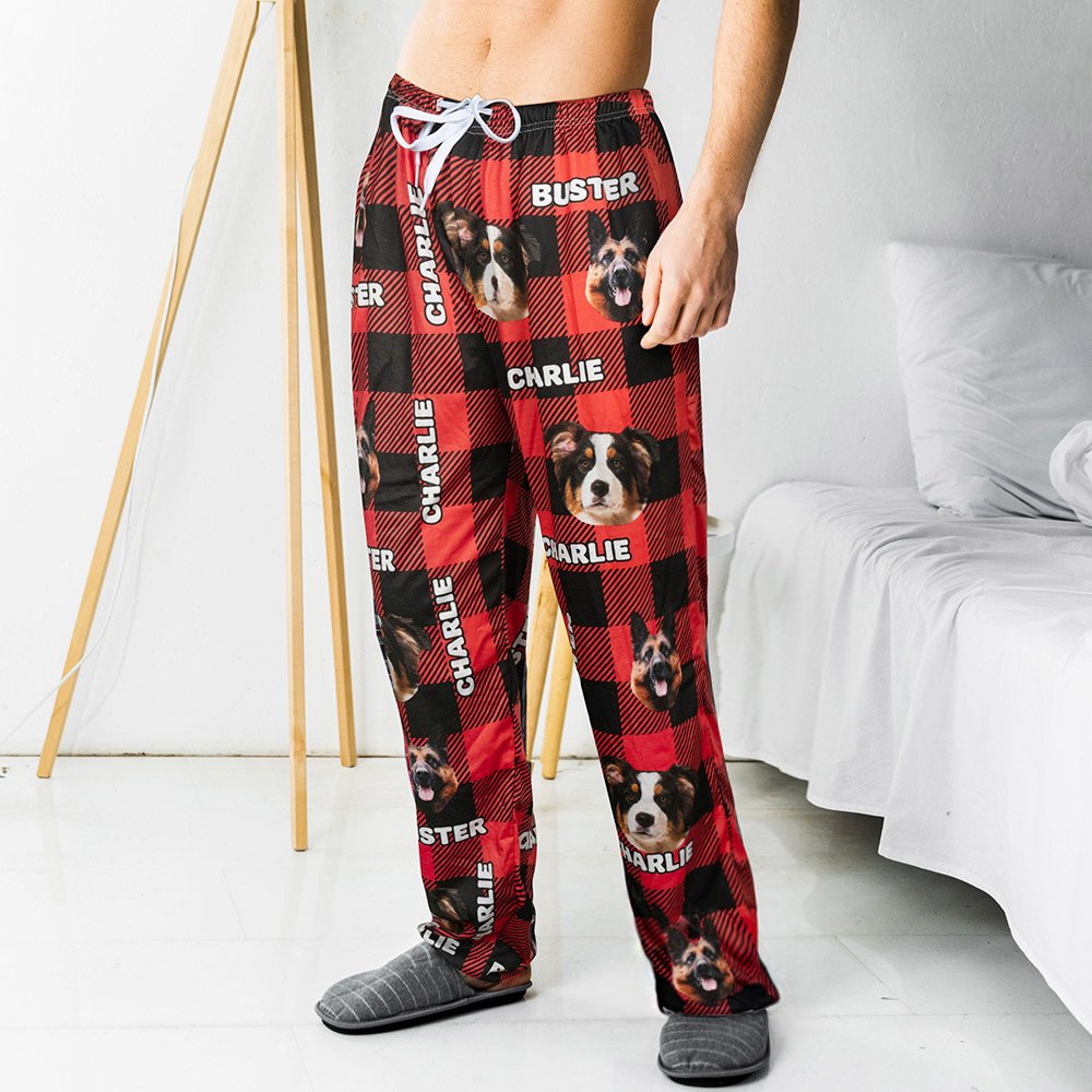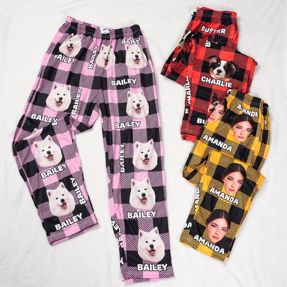 These pyjama bottoms feature 8 bright colours, a classic plaid design, and 3 styles for men, women, and kids. In addition, we provide customized 1-5 dog or cat head portrait photos or your own avatar photos. Your pet's cute face or your face and name will be displayed on the pants, providing the best visual effect and creating unique home clothing.