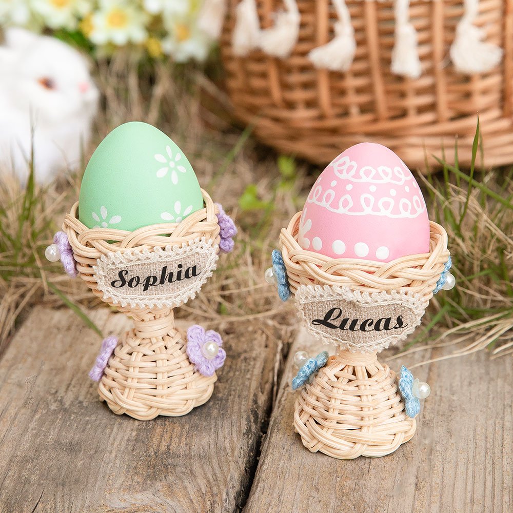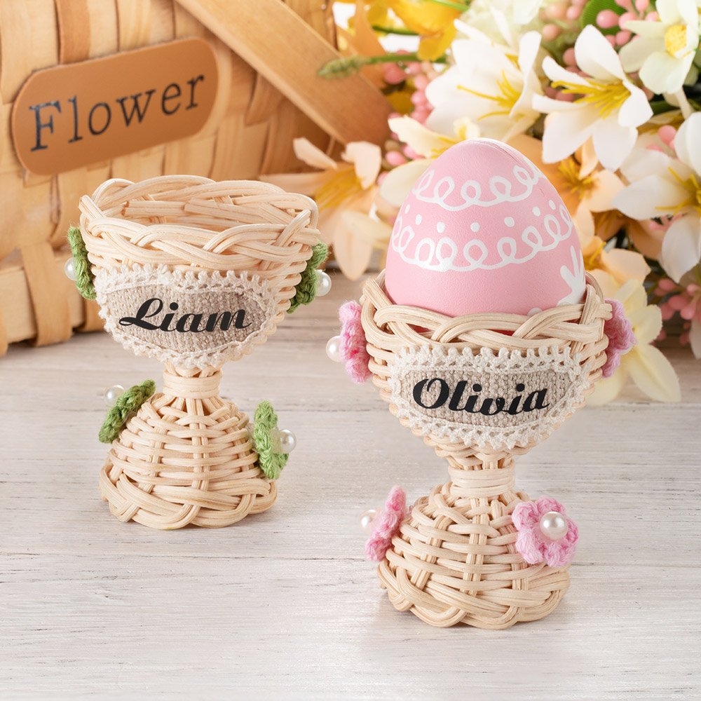 Looking for a festive and charming addition to your Easter celebrations? Look no further than the Easter flower egg cup. Made from high-quality rattan and adorned with delicate crocheted flowers and pearl decorations, this egg cup is the perfect choice for Easter!