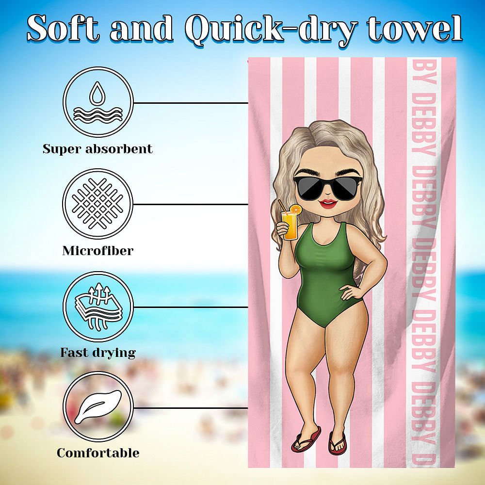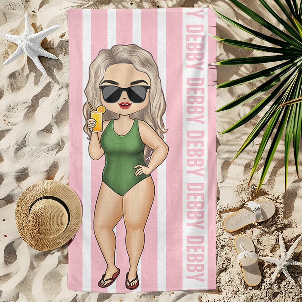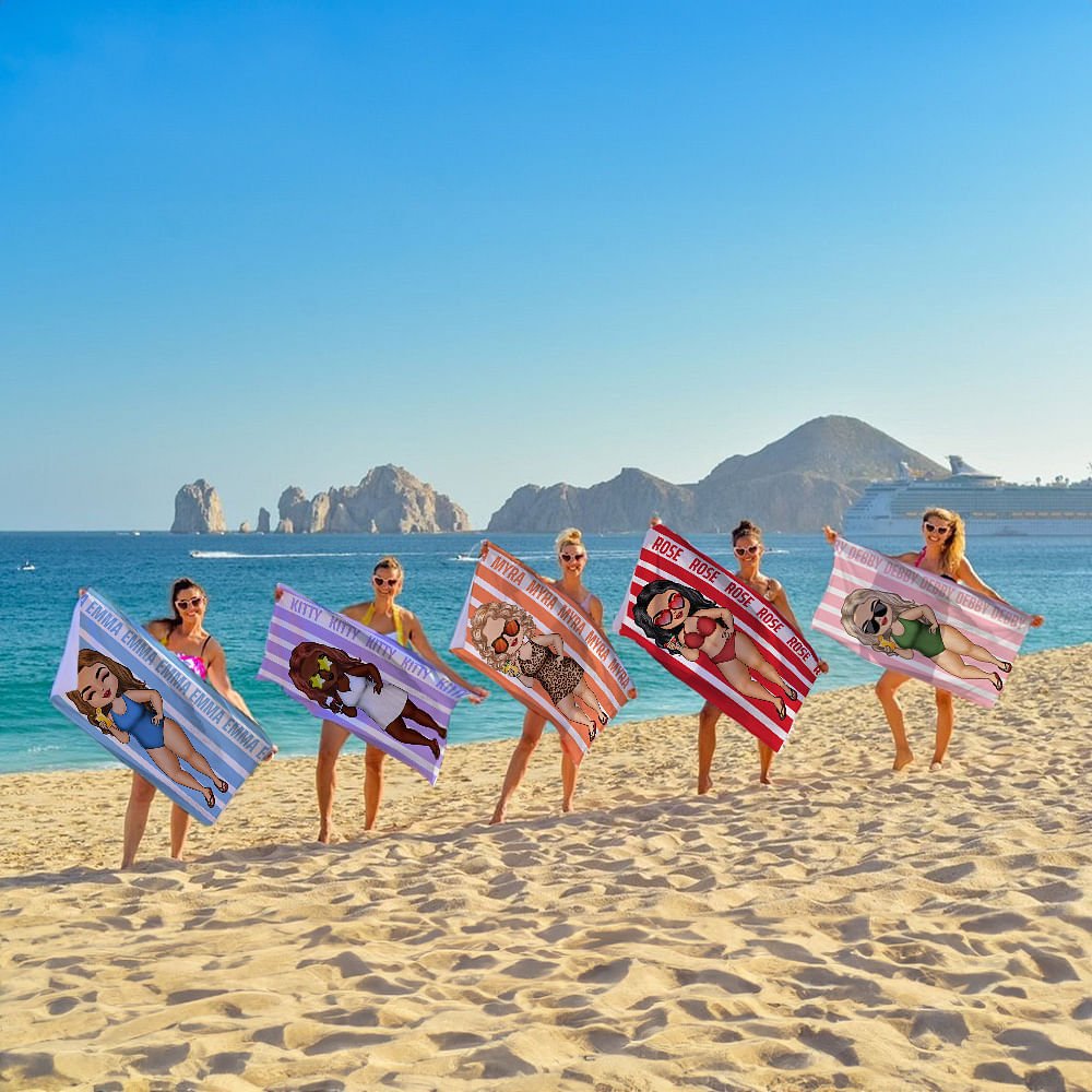 This Personalised character cartoon is paired with a classic striped beach towel, and the fun character image and bright colours can enhance the beach experience. The customizable name design allows you to stand out from the crowd and enjoy the enthusiasm of summer.