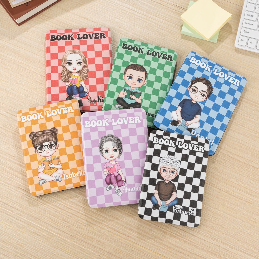 This Kindle cover features a checkerboard pattern as the base, cleverly combining colourful cartoon characters to satisfy diverse aesthetic preferences. Each character holds a book, adding a lively touch, while the phrase "BOOK LOVER" printed above showcases a passion for reading. Below, there's an option for a customized name, making each cover one-of-a-kind and a perfect expression of personal style.