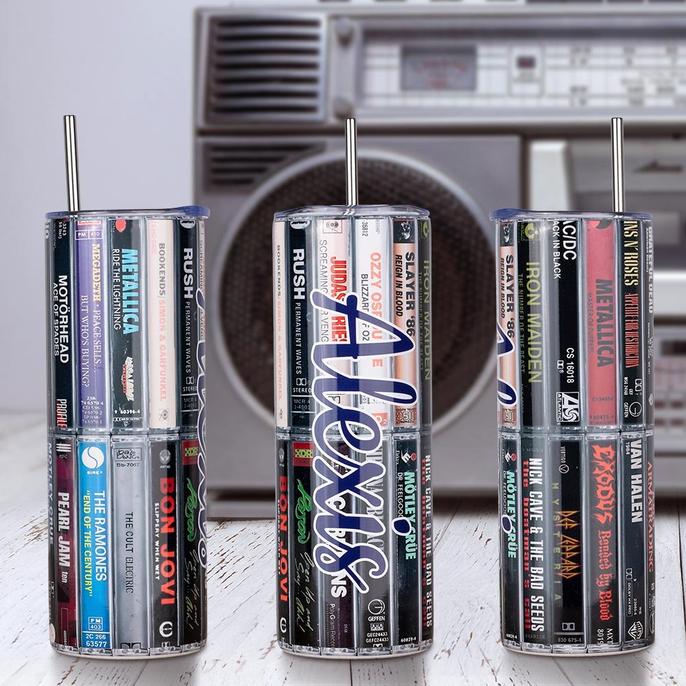 The exterior of the glass features a detailed and vibrant cassette tape design, reminiscent of the iconic tapes of the 80s and 90s. A nostalgic tribute to the music that defined an era, the unique and eye-catching shape evokes retro feelings.