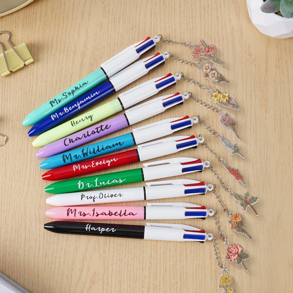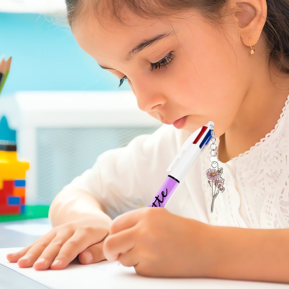 | Feature: | Durable, Lightweight, Portable, Smooth Writing, 4 in 1 Colors, Birth Flower Design, Name Customization |