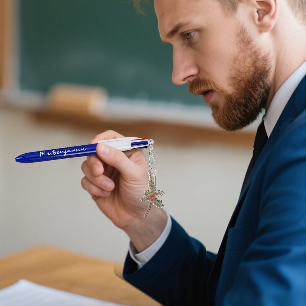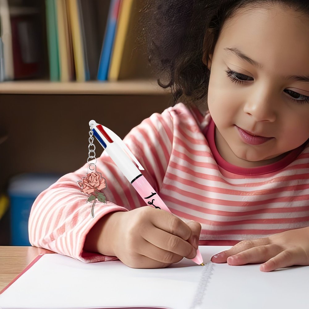The core design features custom acrylic birthday flower pendants and pen bodies with Personalised names, paired with four-colour ink functionality. The overall style combines practicality with commemorative significance. The small and cute birthday flower pendant conveys a special meaning, while the Personalised name gives the pen a unique identity, transforming a writing tool from ordinary stationery into a Personalised commemorative item that carries emotion, showcasing thoughtfulness and ingenuity.