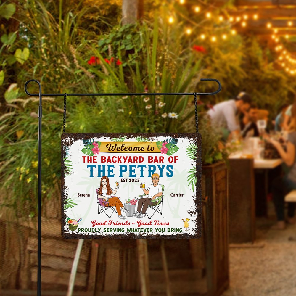 This garden sign features a vintage cartoon character surrounded by blooming flowers and fluttering butterflies, creating a relaxed and inviting atmosphere. The text "The Crazy Plant Lady and the Grumpy Old Man" along with "Welcome to Our Garden" adds depth to the artwork. You can customize the cartoon figure, title, name, and date, making each sign truly unique.