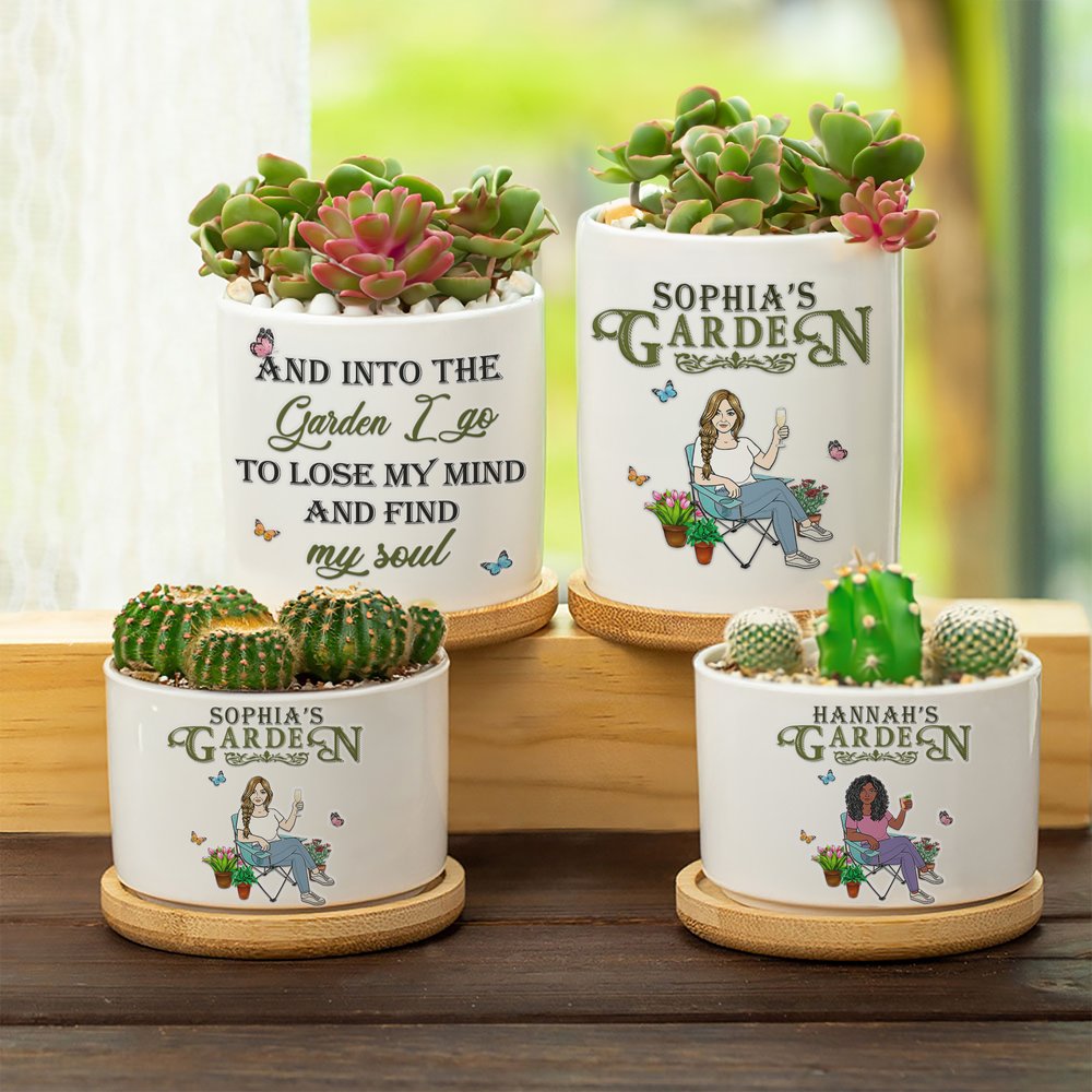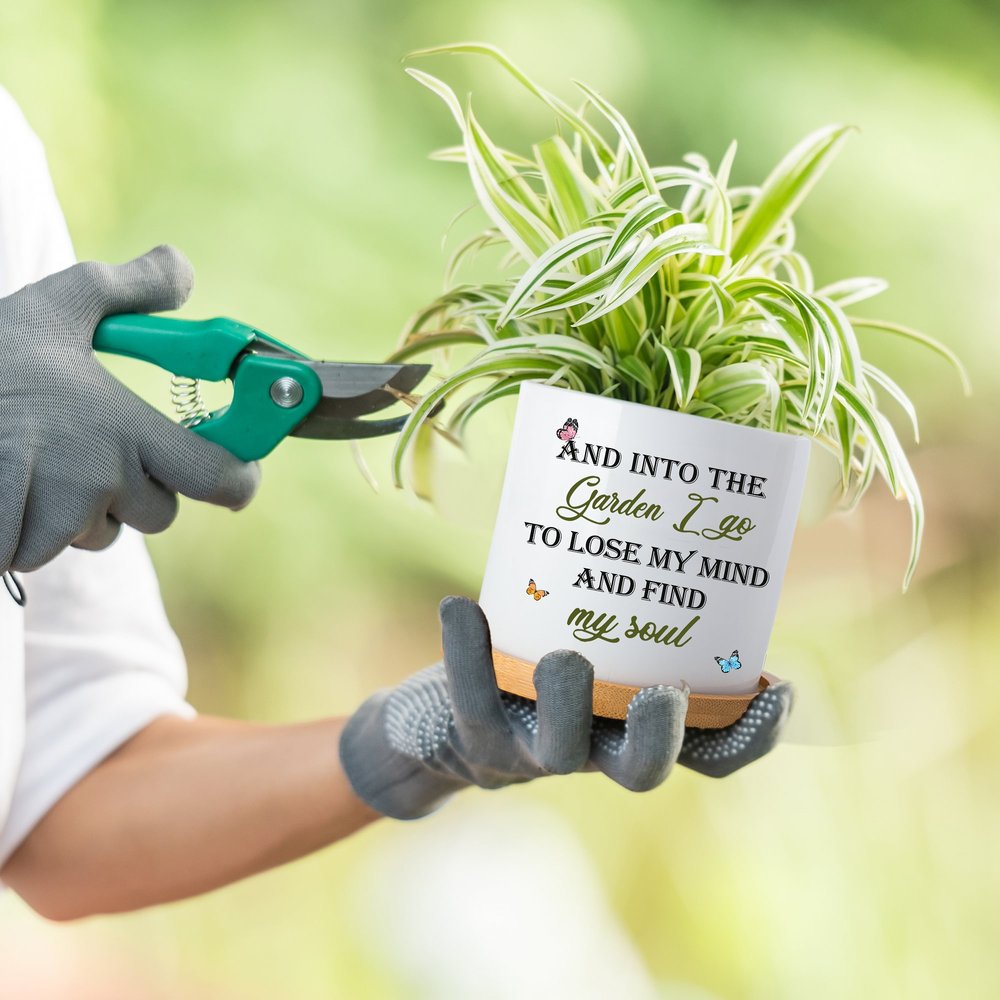 The front of these plant pots is inspired by flowers, potted plants and cartoon characters, and the back is accompanied by the famous saying "AND INTO THE GARDEN I GO TO LOSE MY MIND AND FIND MY SOUL" , creating a relaxing and comfortable garden atmosphere. In addition, the front of these plant pots can be Personalised. You can print your name on it to create a unique garden work, adding fun and personality to your space.
