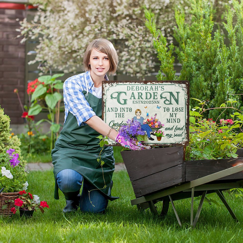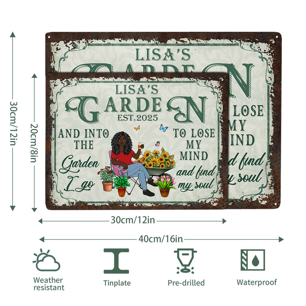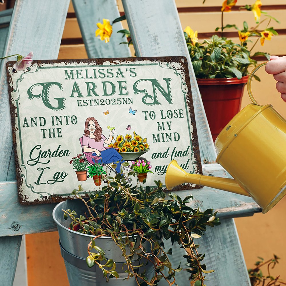 Our metal signs feature the lighthearted message "Into the garden I go to lose my mind and find my soul" and appeal to gardening enthusiasts. You can pair the cartoon characters to suit your taste and pair them with natural elements such as potted plants and floats to convey the joy of nature. You can also add your name and date to make this metal sign a beautiful addition to your garden, highlighting your unique personality.