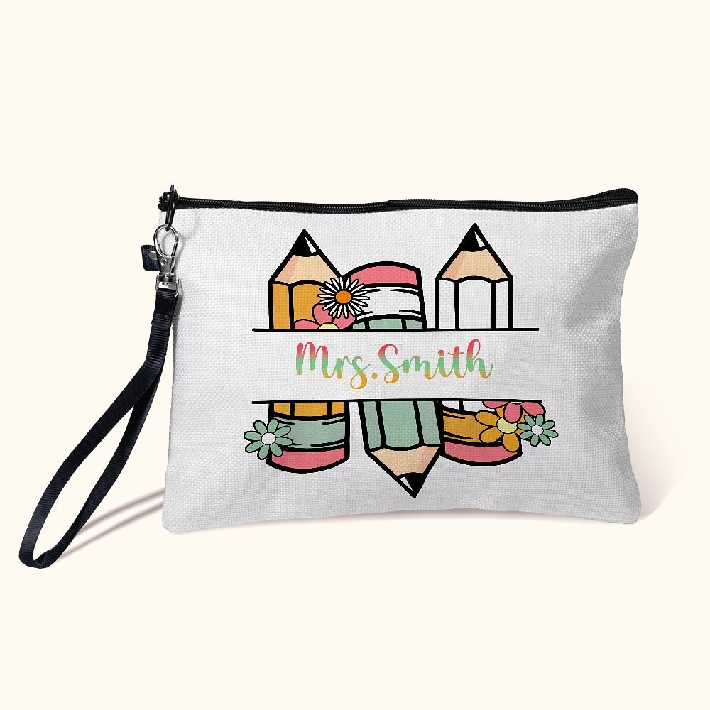 Our storage bag features pencils as the main design element and is paired with flowers to highlight the silent hard work of teachers. You can add your teacher's name to it to express your gratitude.