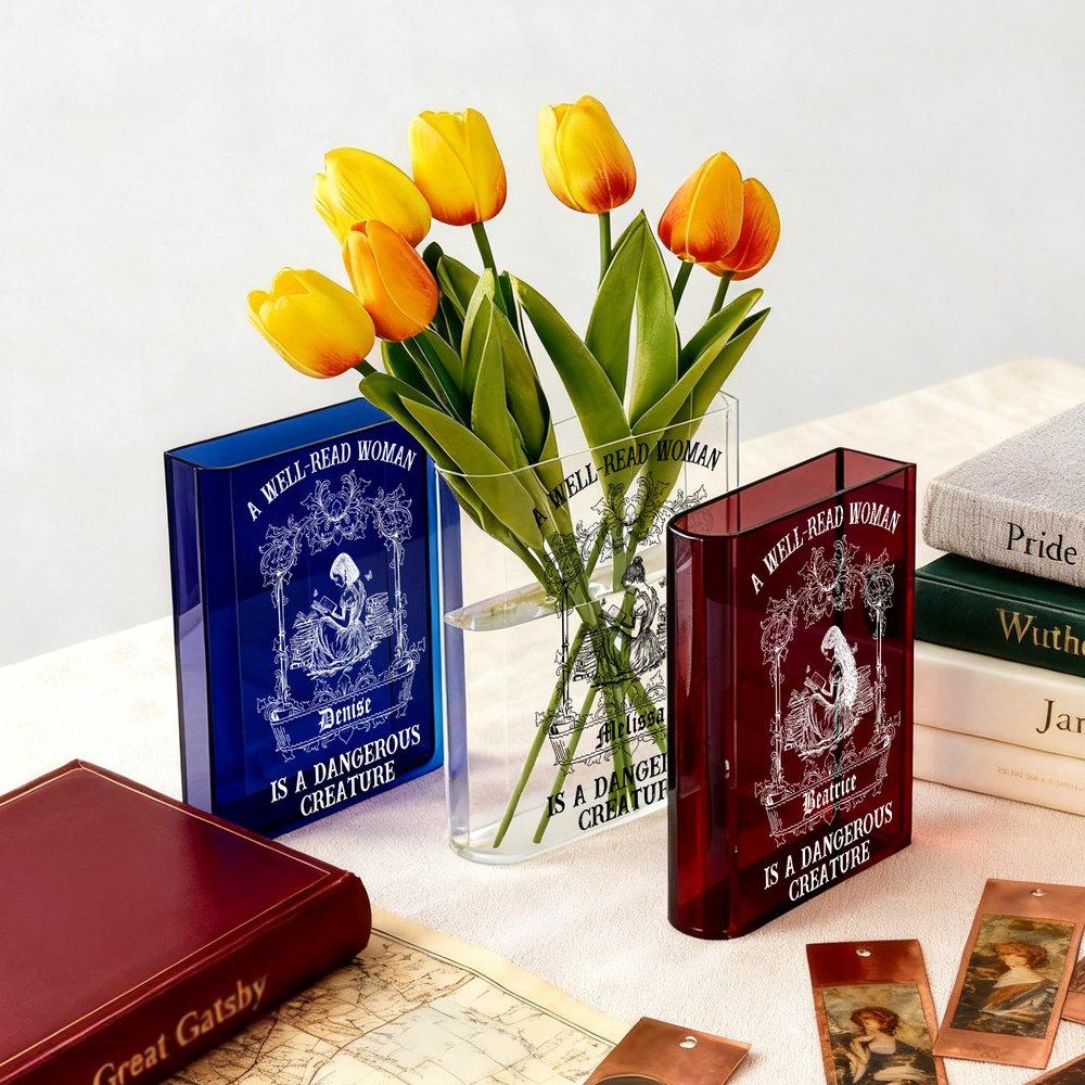 Perfect for showcasing fresh flowers, dried plants, or simply as a statement piece on a bookshelf or desk. Its unique literary design adds a touch of intellectual charm to living rooms, studies, or offices, making it both a functional vase and an artistic decor item.