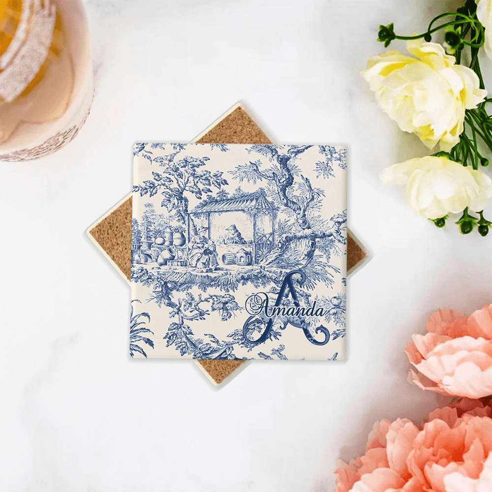 This Personalised Toile De Jouy retro ceramic coaster boasts a unique and charming design. Inspired by the romantic French country style, it features exquisite floral and pastoral patterns that exude a sense of natural beauty and softness. You can customize it with the combination of initials and names, making it a truly one-of-a-kind accessory that adds a touch of style and personality to your tabletop.