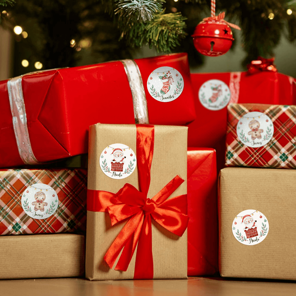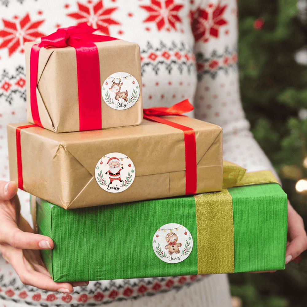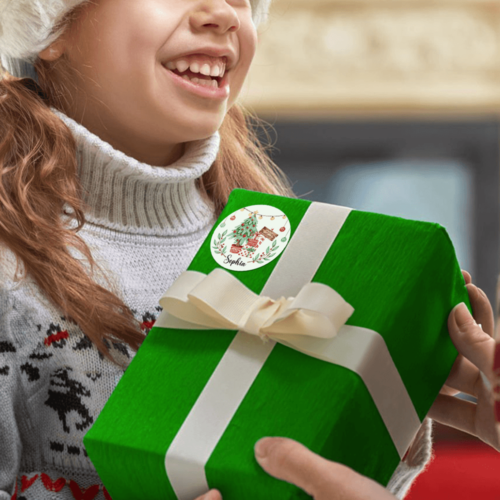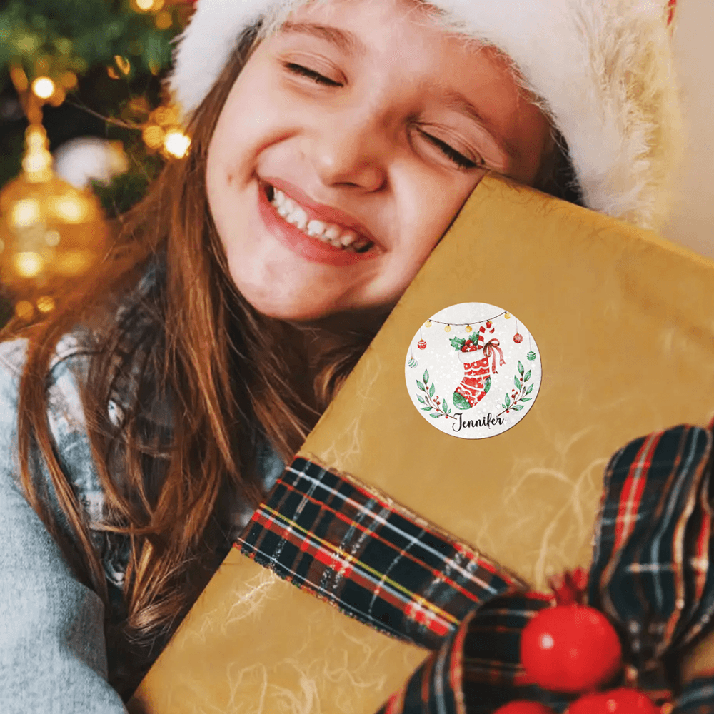 Choose from 15 heartwarming Christmas designs featuring Santa, snowmen, reindeer, and other classic elements. Personalise each sticker with a name for that special touch of holiday magic. Select between a regular sticker and a glitter sticker—the glitter sticker option reflects light with a dreamy glow.