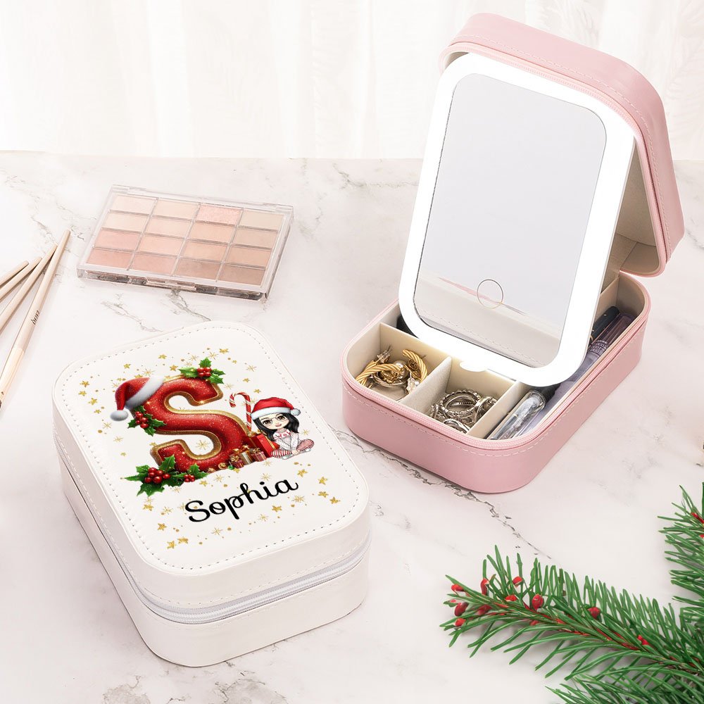 Our jewellery box combines the fun elements of Christmas cartoon characters with customized initials to create a piece of art that is both warm and festive. Each letter is wearing a Christmas hat and surrounded by colourful gift boxes, making the whole design full of creativity. The customizable name makes this gift full of exclusivity and uniqueness, and it is an excellent carrier for emotional transmission and expression.