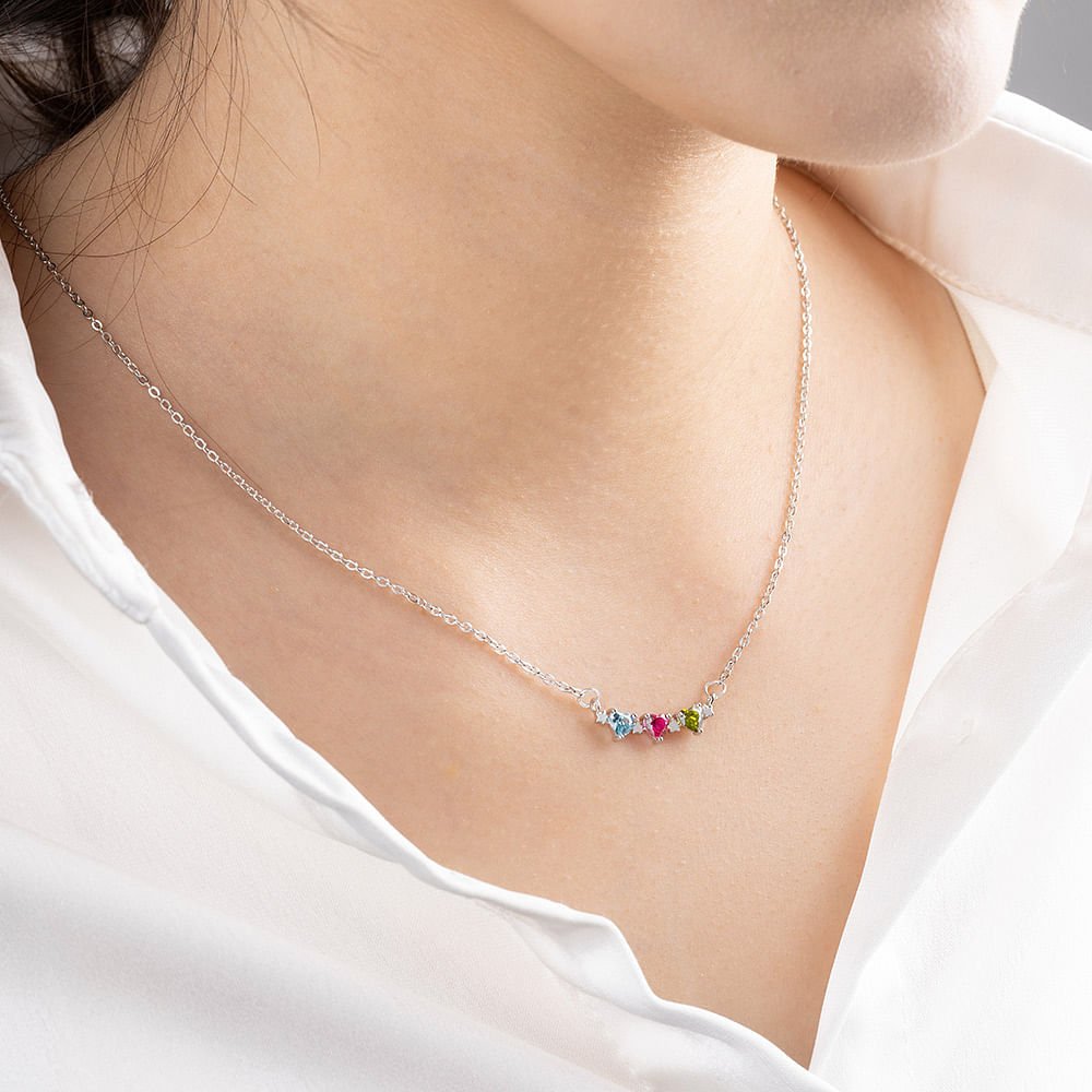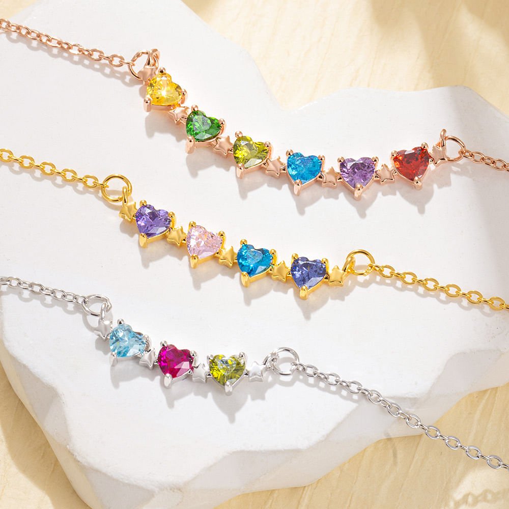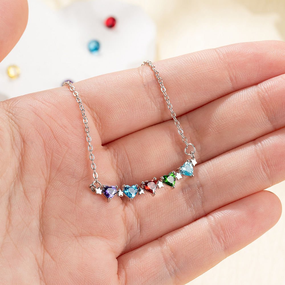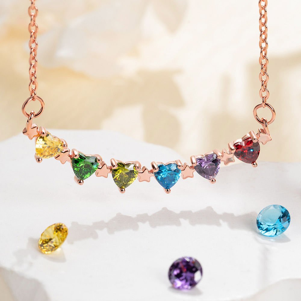 By carefully cutting the heart-shaped birthstone with stars, it is simple and elegant without losing the sense of fashion. 1-6 heart-shaped birthstones further enhance its charm, coloured gemstones symbolize the company of family members, and stars interspersed with each other symbolizing love, warmth, and individuality.