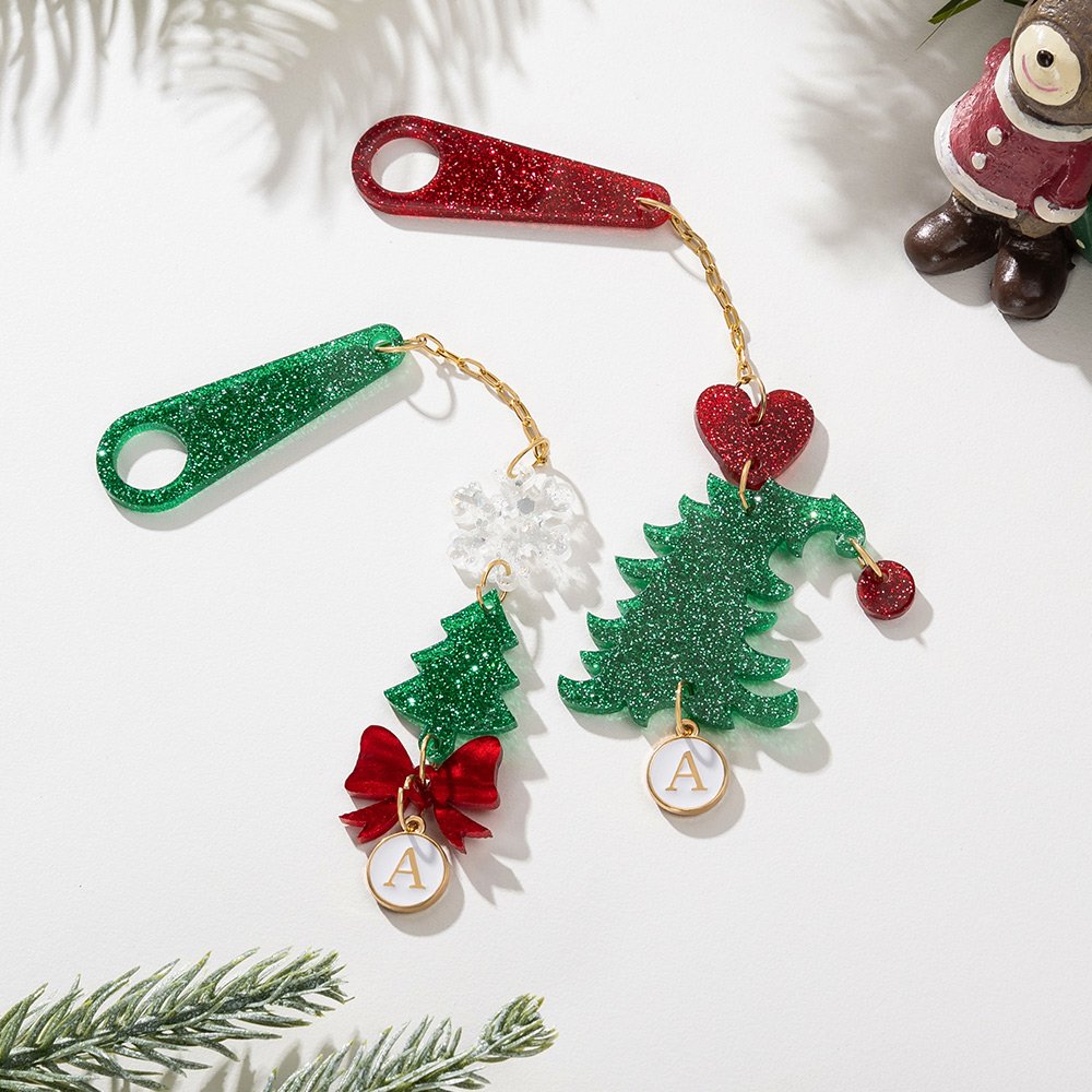 This charm is the perfect combination of festive atmosphere and practicality. The combination of snowflakes, Christmas trees, and red bows not only ties into the Christmas theme but also adds a touch of warmth and romance. The charm also has a circular pendant with a customizable initial at the very bottom, making it even more special.