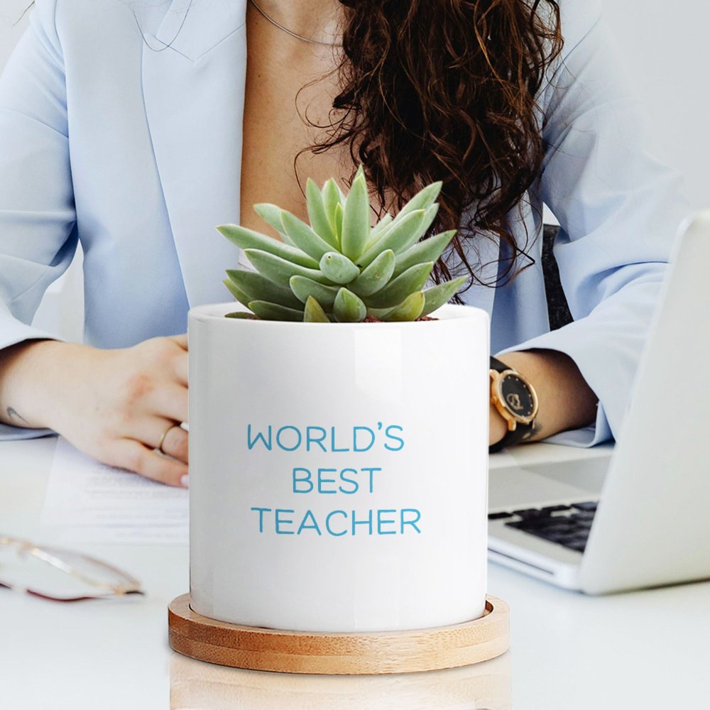 Crafted from high-quality ceramic, this plant pot is designed for durability and longevity. It comes with a bamboo tray that adds a natural touch and ensures proper drainage. The sturdy construction allows it to hold various small plants, including succulents and herbs, making it perfect for both indoor and outdoor gardening.