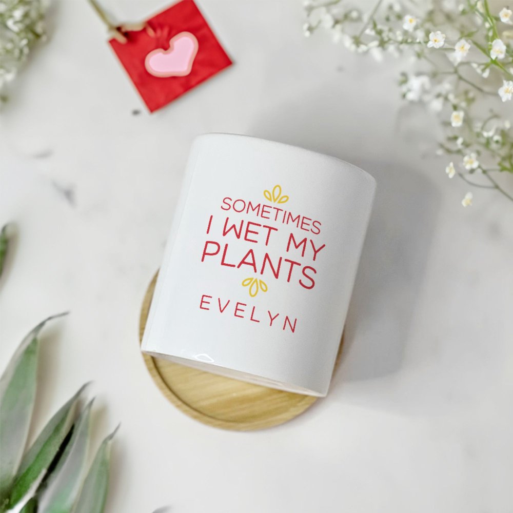 This charming plant pot features the playful phrase “Sometimes I Wet My Plants” and allows for customizable text, enabling you to add a name or a special message. This distinctive touch makes it a delightful gift for plant lovers and gardening enthusiasts, infusing humor and personality into their collection.