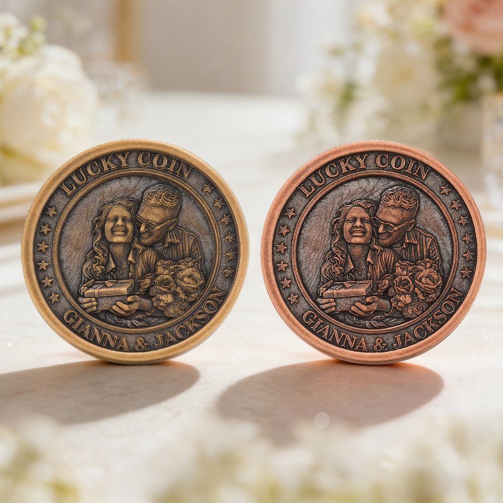 Inspired by the romantic love and lucky wishes between couples, this round commemorative coin features star patterns. The red and yellow colours hold beautiful meanings, and they support custom names and photos, making each coin a unique romantic token for you two.