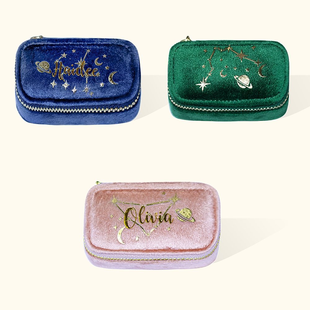 This constellation velvet travel jewellery case can be put into a handbag easily. Jewellery can be put in orderly and will not be entangled. With the constellation and name you want to find easily. Ideal for storing jewellery including bracelets, earrings, rings, necklaces, and other precious keepsakes. The compact body is very suitable for daily use and traveling.