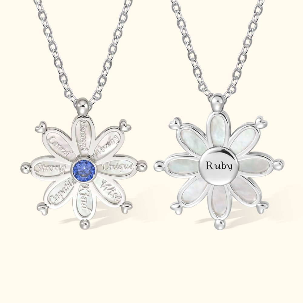 To make this necklace even more special, it can be customized with different birthstones according to your birthday. Additionally, you can choose a short phrase, special message, or recipient's name to be engraved on the back of the daisy flower to convey a heartfelt encouragement to the recipient.