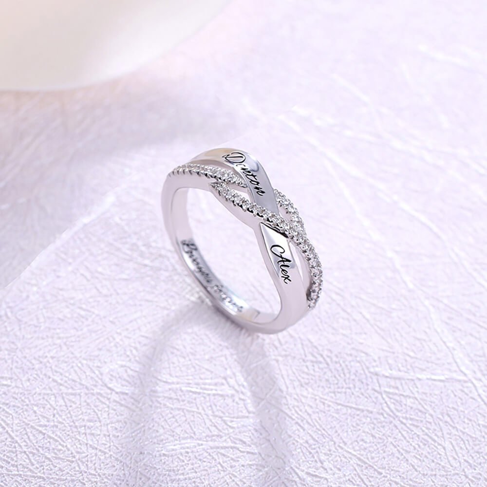 The ring offers you the room to Personalise it further by engraving two names. These could be the names of the couple or anyone who holds a significant place in your heart. This customization takes the ring's sentimental value to the next level, making it truly one-of-a-kind.