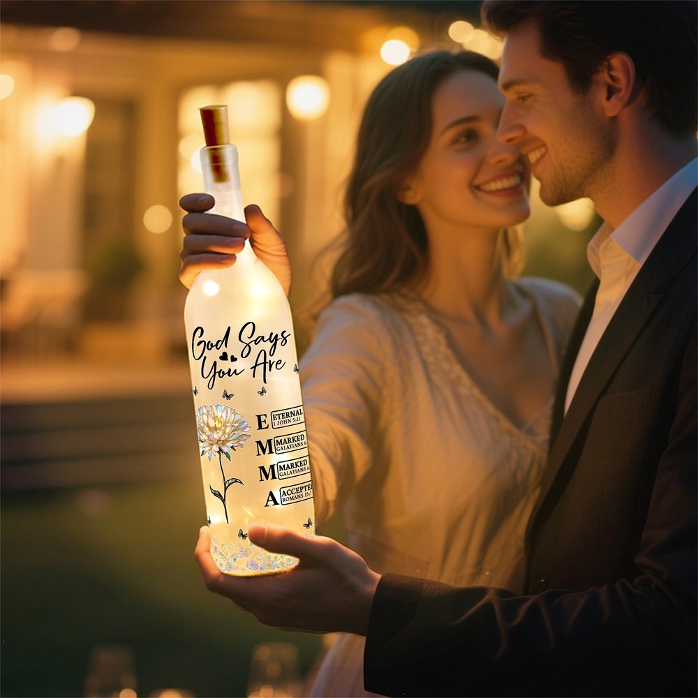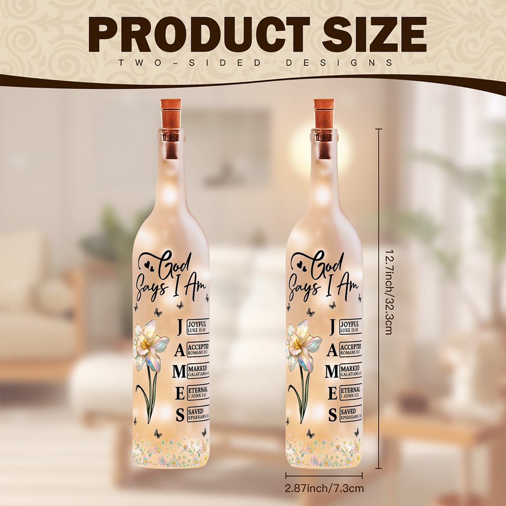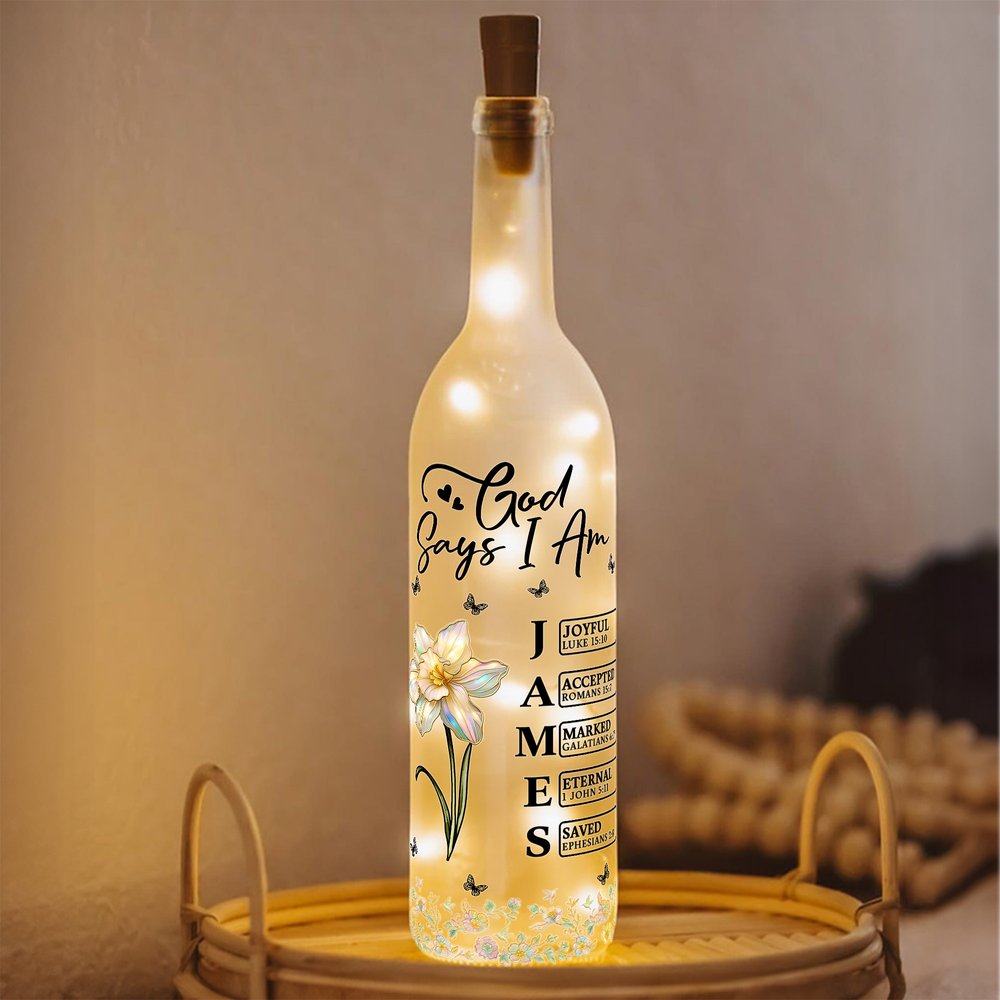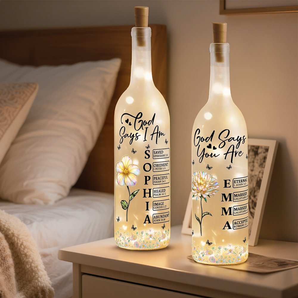 Personalised Stylish God Says I Am Birth Flower Butterfly Love Quote Glass LED Bottle Lamp with Name Mother's Day Gift for Mom Grandma