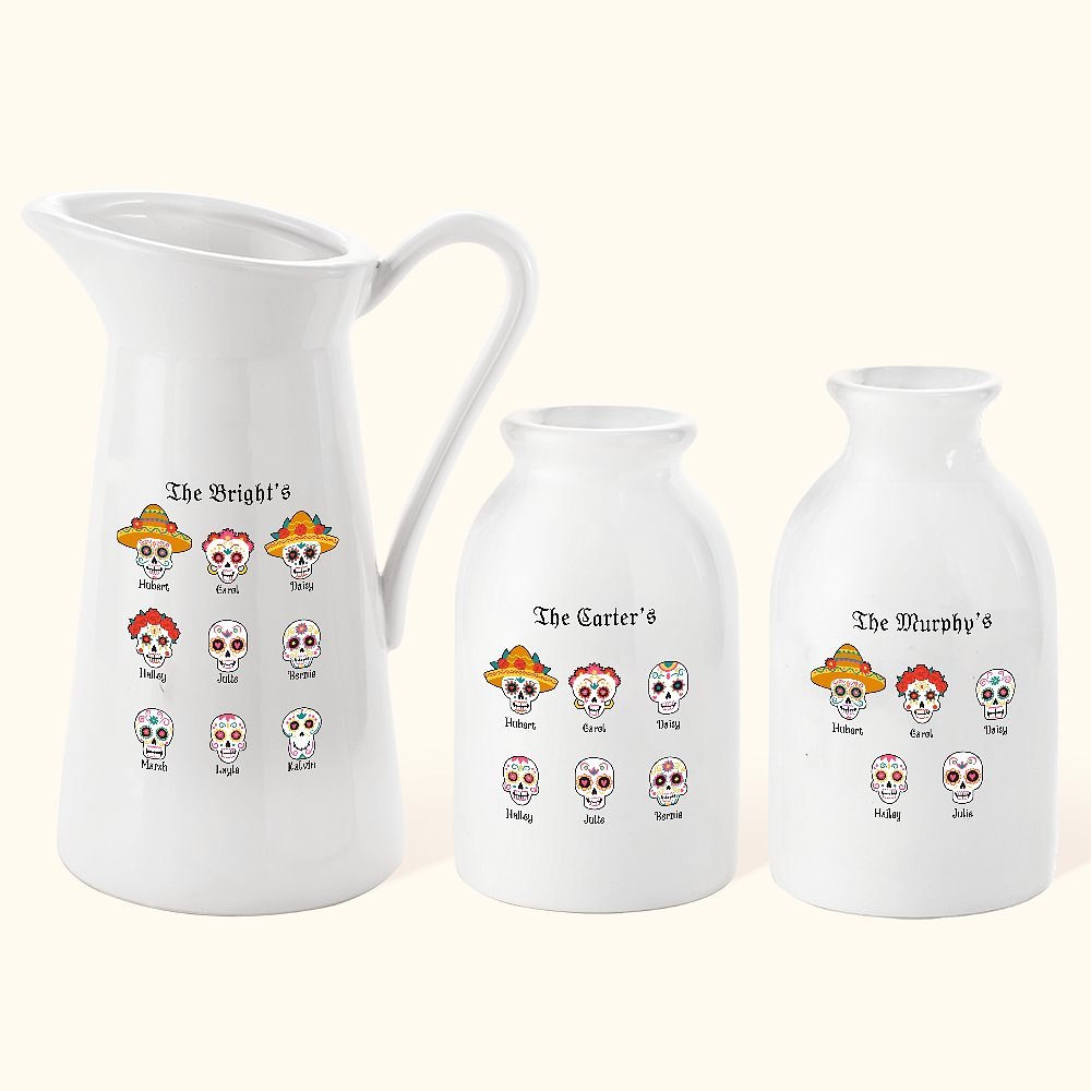 This Personalised sugar skull ceramic vase combines the traditional elements of the Day of the Dead with modern home aesthetics. You can choose 1-9 family members' names on the vase. Whenever there are flowers in it, it is a transmission of endless love for your family.