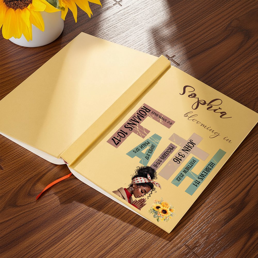 This notebook, designed specifically for Black girls, features a customizable Black girl character design. You can customize it with your name, while the Bible chapter names perfectly reflect your Christian faith. It's the perfect blend of personalization and spiritual expression.
