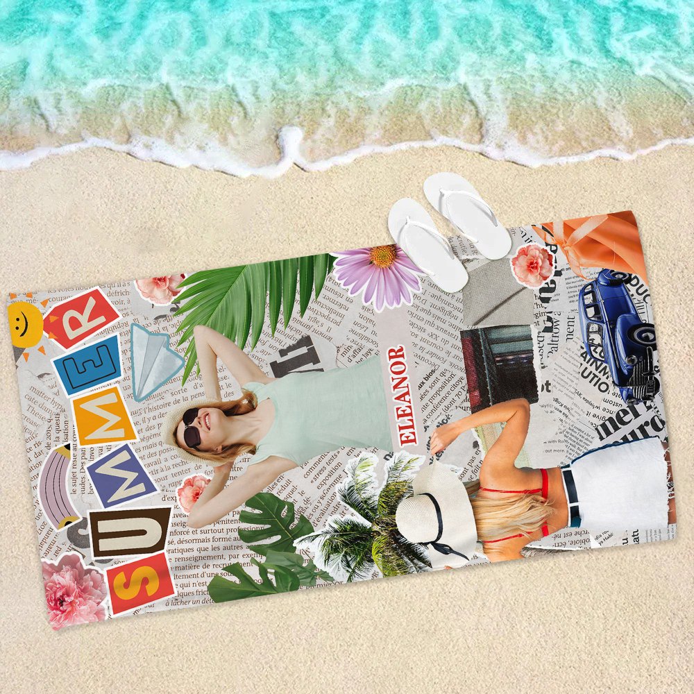 We've seamlessly incorporated the photos you provided into the poster design, transforming ordinary snapshots into eye-catching illustrations. Adding your name further enhances the Personalised touch, making this towel a heartfelt keepsake that celebrates your summer memories.