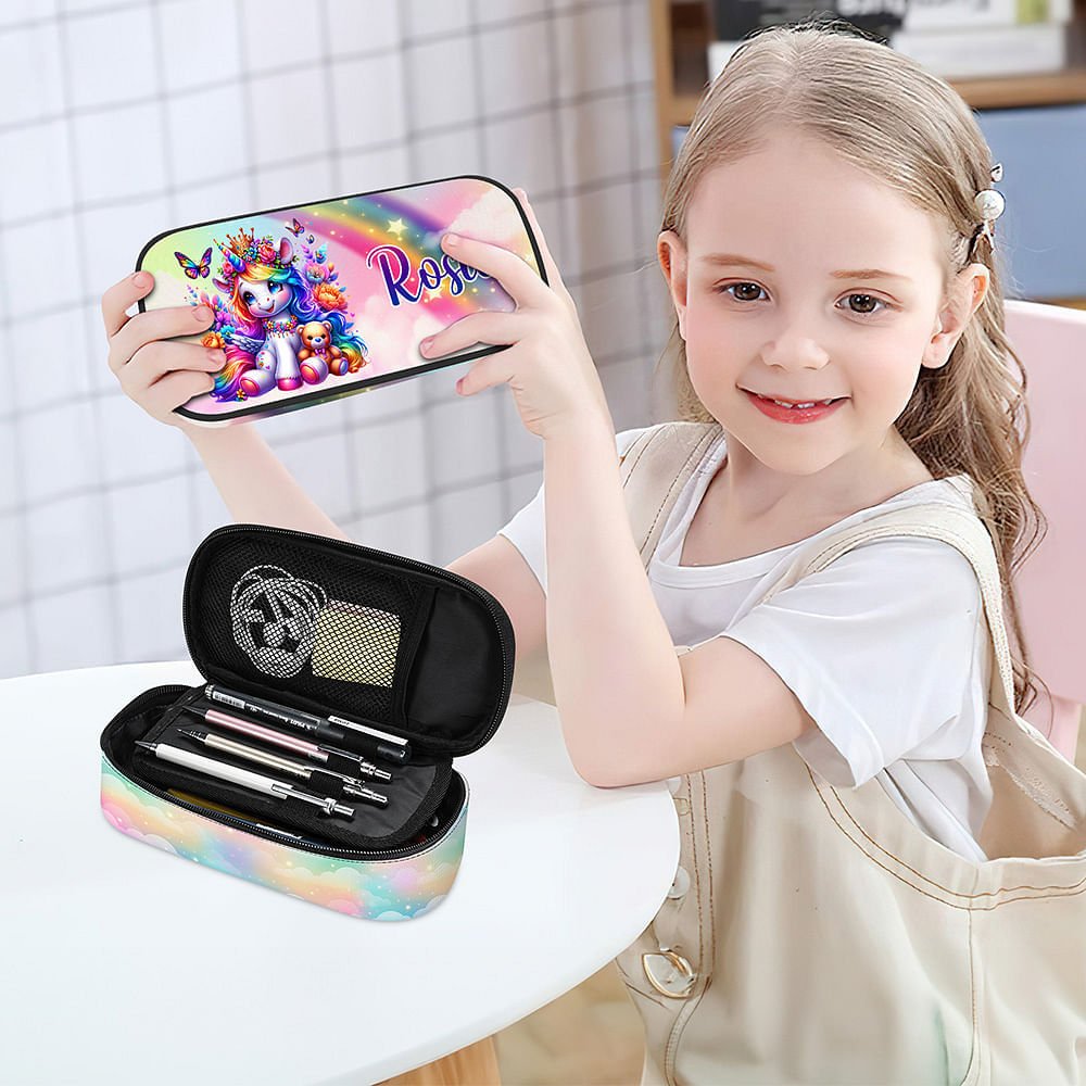 This enchanting pencil case is a dream come true for fantasy unicorn lovers and creative spirits. The vibrant rainbow colours and whimsical floral patterns bring the mystical unicorn to life, making it a standout accessory for school or home. Personalise it with your name, and you’ll have a one-of-a-kind pencil case that reflects your unique style and personality.