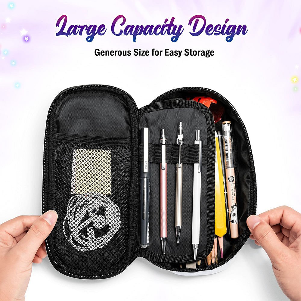 Experience the ultimate convenience with the mesh pocket and multi-compartment design! This feature allows you to neatly organize and separate your pens, pencils, Rubbers, and more. Say goodbye to clutter and easily find what you need whenever you need it.