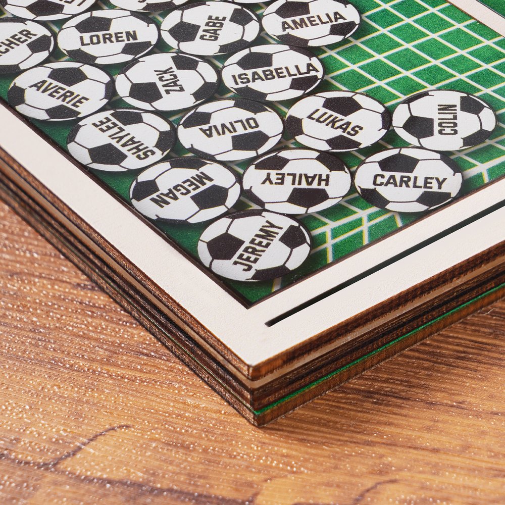 This shaker features a soccer field design with moving soccer pieces inside, each of which can be customized with a player's name. Shaking the piece mixes the soccer into random positions, creating a fun and interactive effect. It can also be personalised with the coach's name, team name, and year, alongside the message "Thanks for a great season." This not only preserves team memories but also turns collective warmth into a tangible, interactive keepsake.