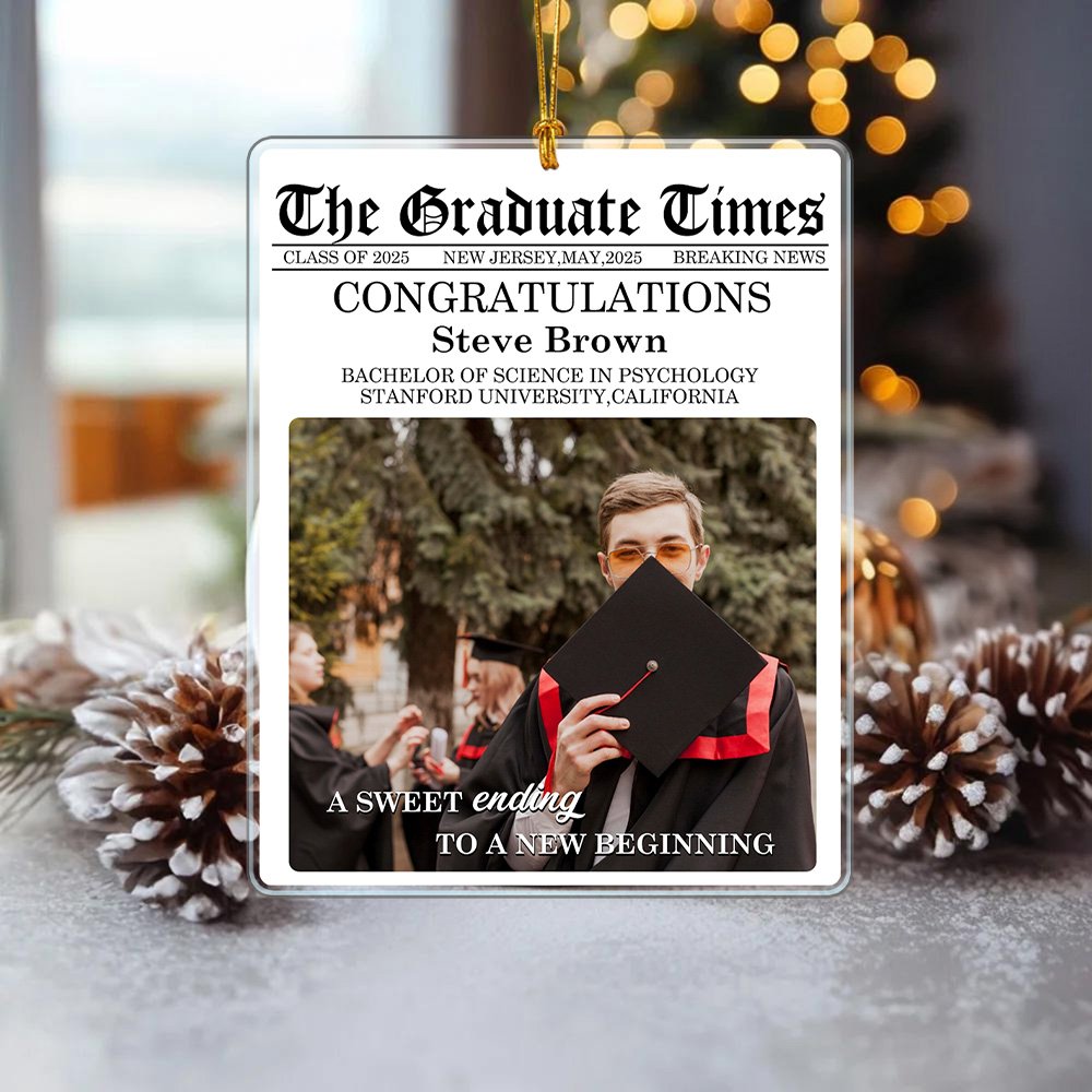Celebrate the milestone of graduation with this acrylic photo hanging with the theme of "The Graduation Time - A Sweet Ending, To a New Beginning"! This innovative hanging features a newspaper-style layout to display your beautiful graduation photos and can be customized with graduation year, graduation location, school name, and university name to create a unique graduation souvenir.