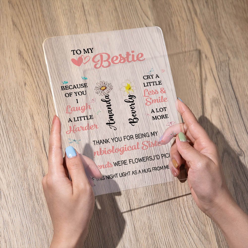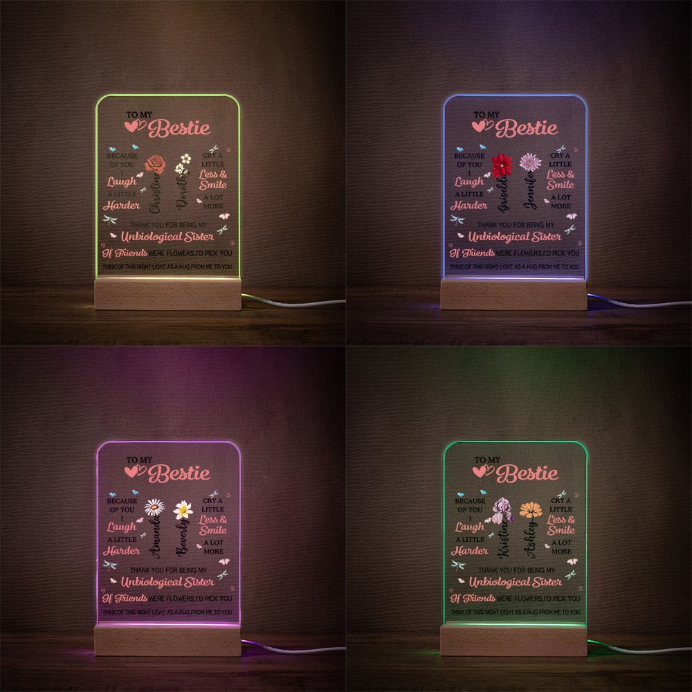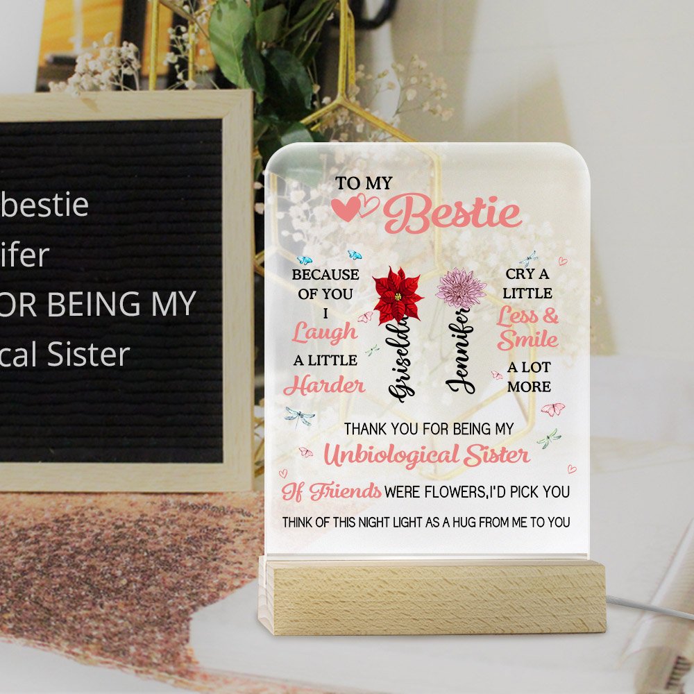This To My Bestie night light allows you to add birth flowers and your and your friend's names, paired with sentimental text, making it a truly unique gift. It's a unique way to commemorate your precious friendship and show your best friend how much they mean to you.