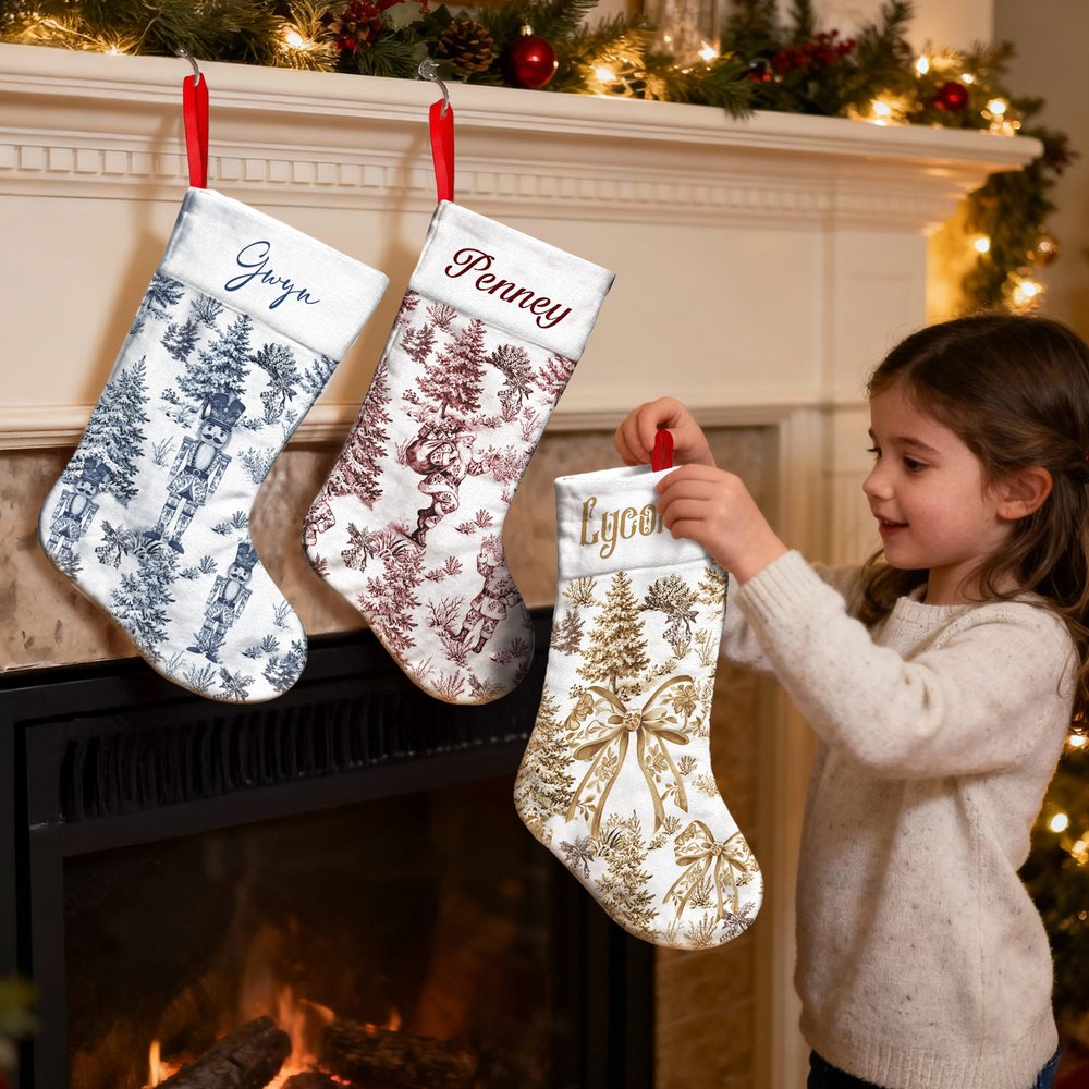 | Feature: | Durable, Soft, Easy to Hang, Toile De Jouy Style, Christmas Theme, Name Customization |