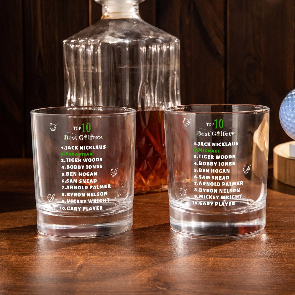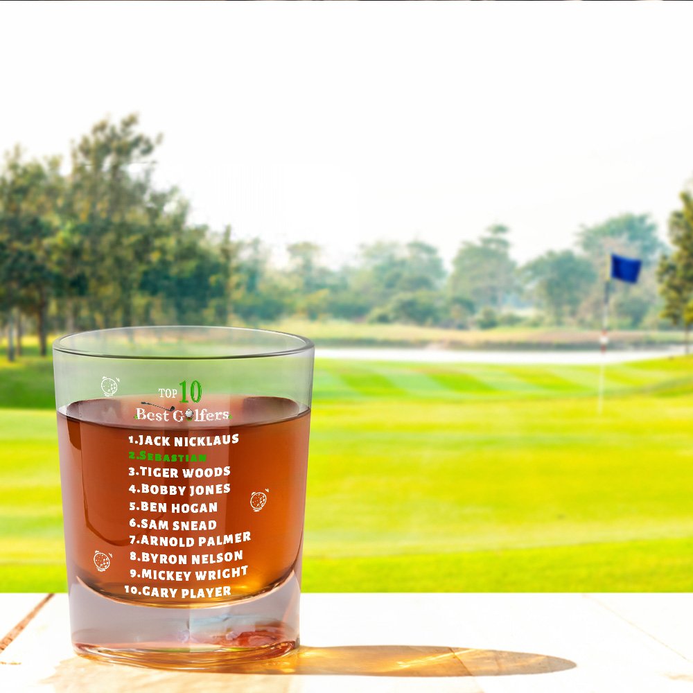 The customizable name allows him to fulfill his dream of becoming a golfer, with the "unofficial" but glorious status of one of the top ten golfers, our whisky glass tailored for the top ten golfers is not only a piece of drinkware but also a conversation starter. Its modern aesthetic complements any barware collection.
