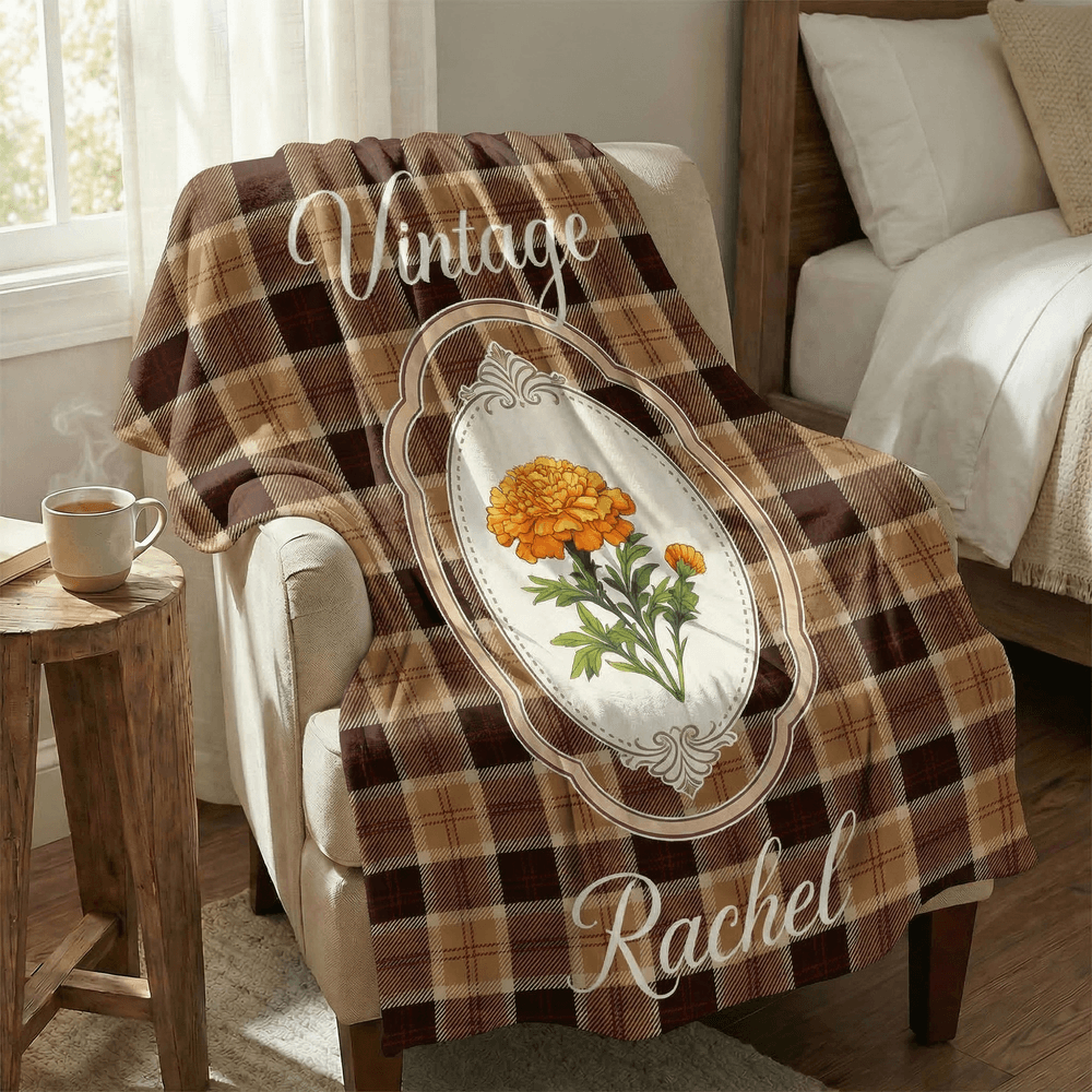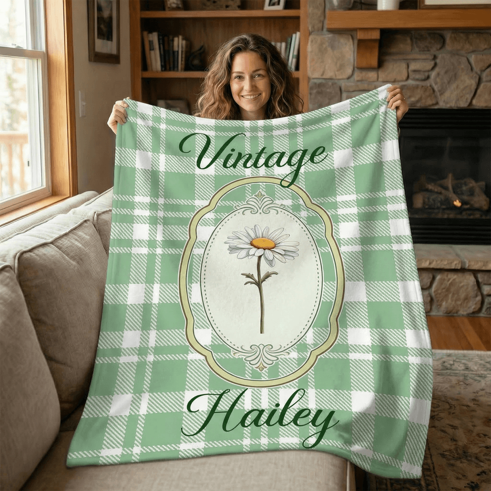 Featuring a vintage birth-flower theme with elegant retro plaid styling, this personalised blanket is finished with a custom name to make it truly one-of-a-kind. The combination of vintage charm and birth-flower symbolism creates a warm, meaningful décor piece designed especially for her.