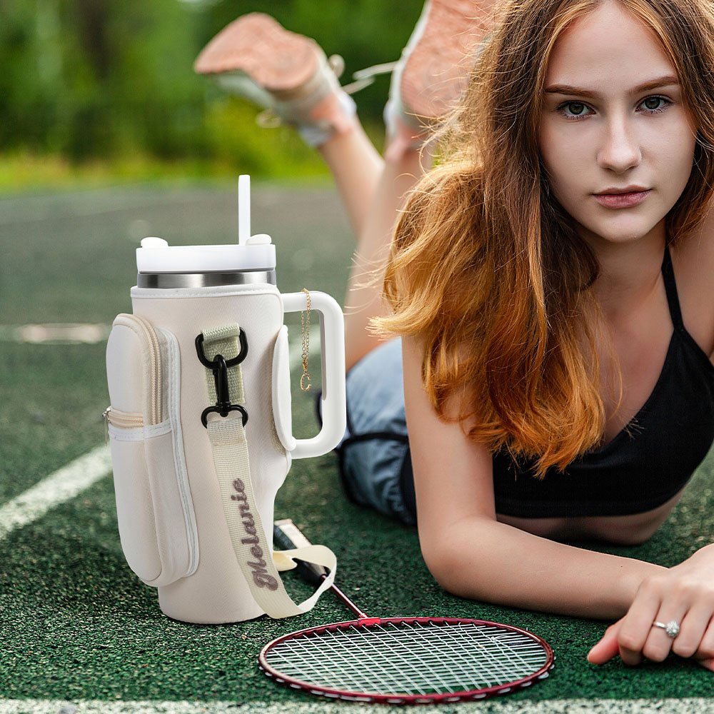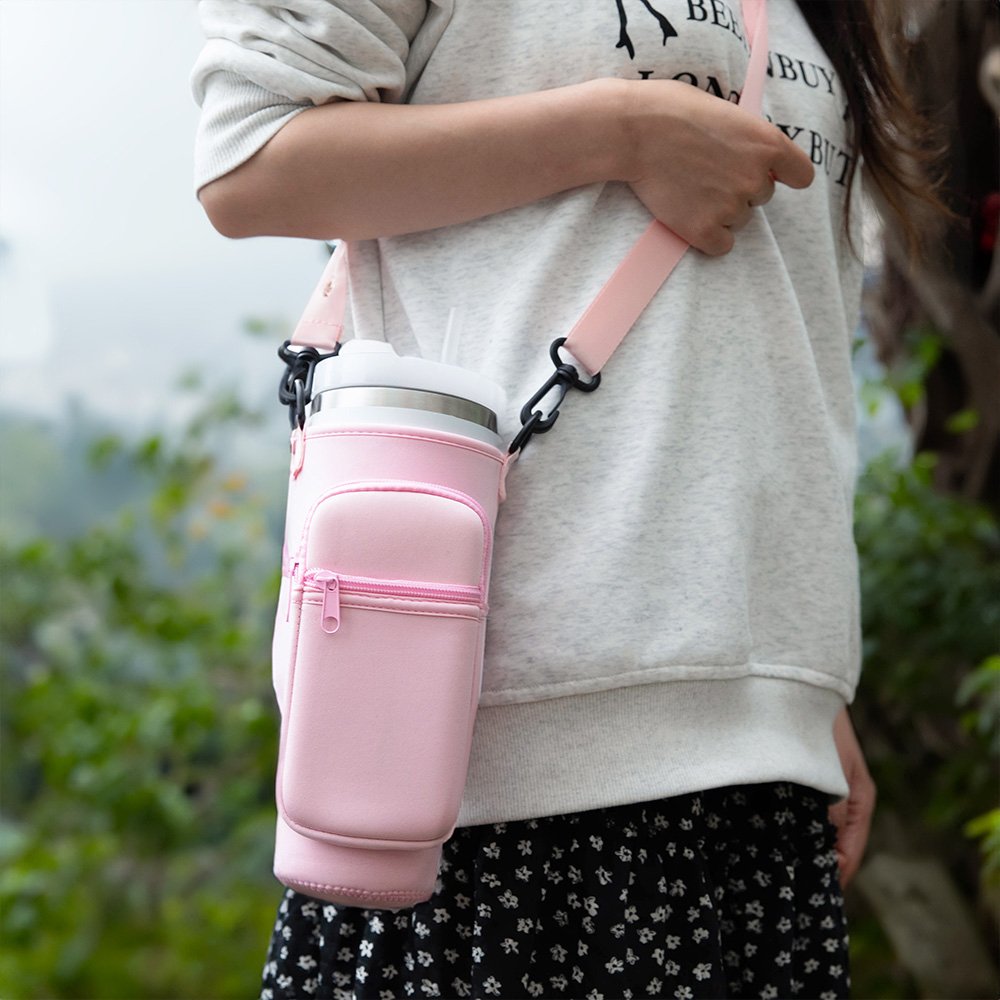 Designed with comfort in mind, the bag features a comfortable shoulder strap that allows you to carry your 40oz tumbler with ease. Whether you're hiking, biking, or simply on the go, this carrier bag frees up your hands for other adventures, making hydration convenient and effortless.