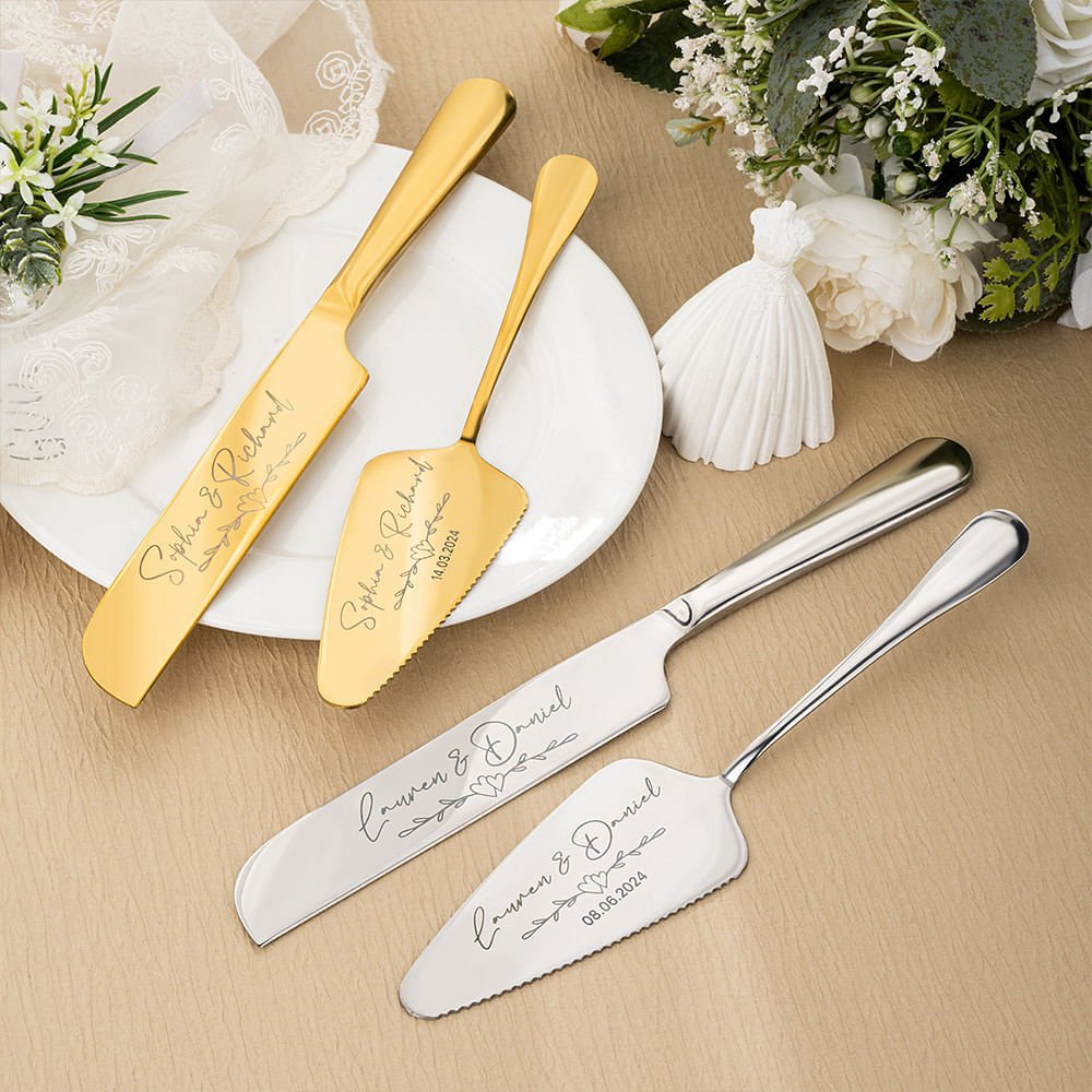 What makes this cake-cutting set truly special is the option to engrave the couple's names and dates onto the surface. This personalization adds a heartfelt feel, transforming the set into a cherished keepsake that will forever commemorate their special day.