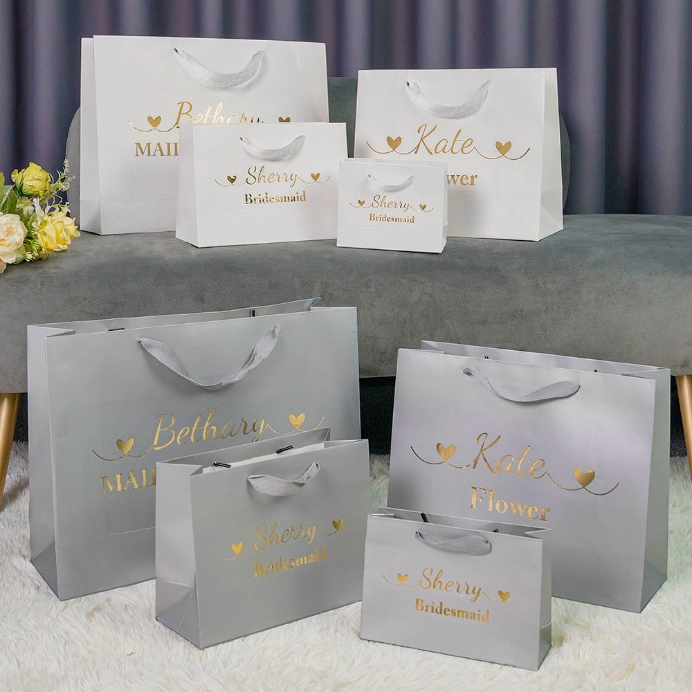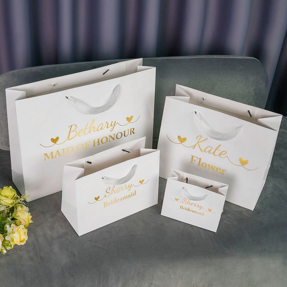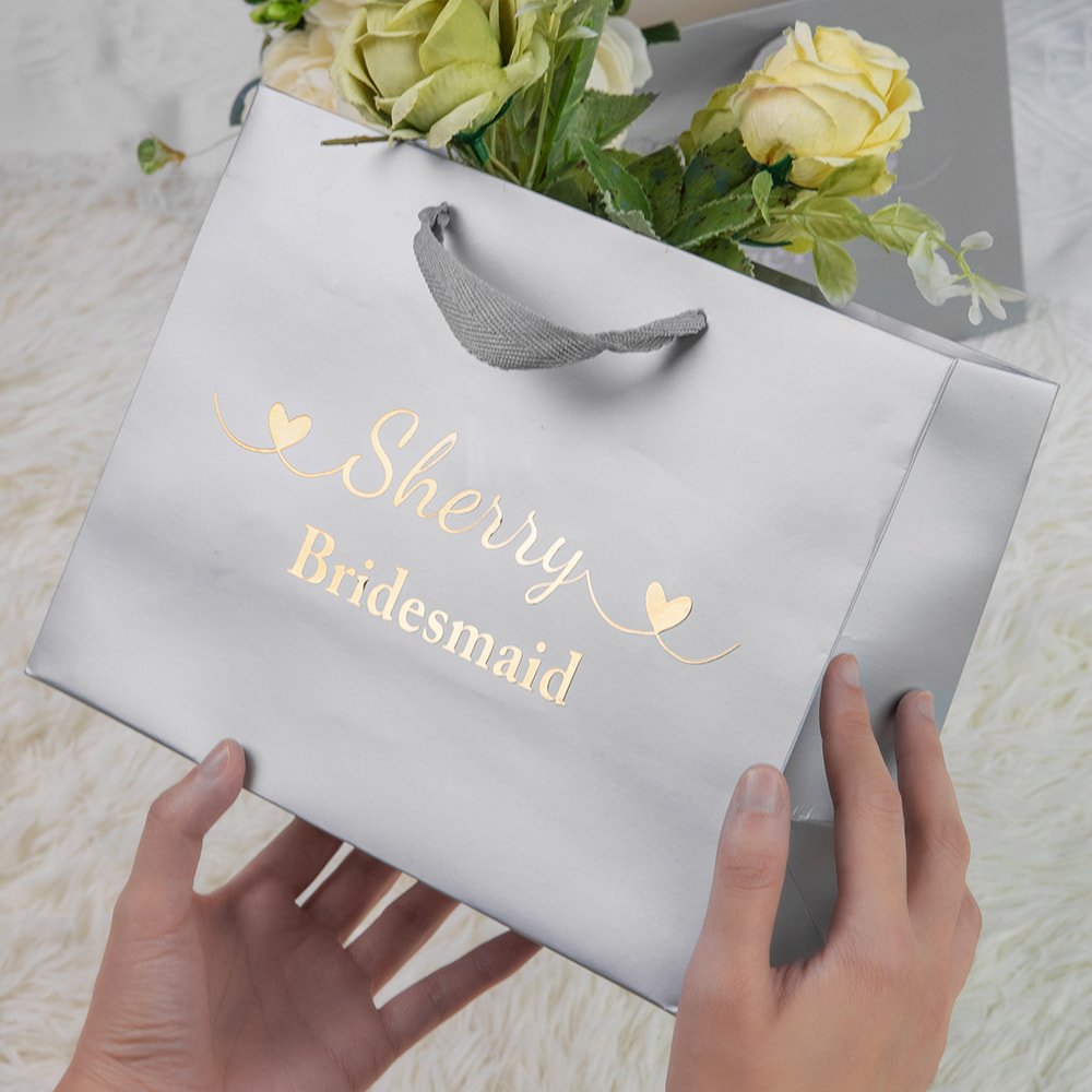 This gift bag is available in four sizes and a variety of font colours to suit all your needs for bits and pieces or larger products. What's special is that you can customize it with a name and phrase to mark the momentous occasion. Each bag is thick and will not tear or rip easily. Great for packing groceries, merchandise.