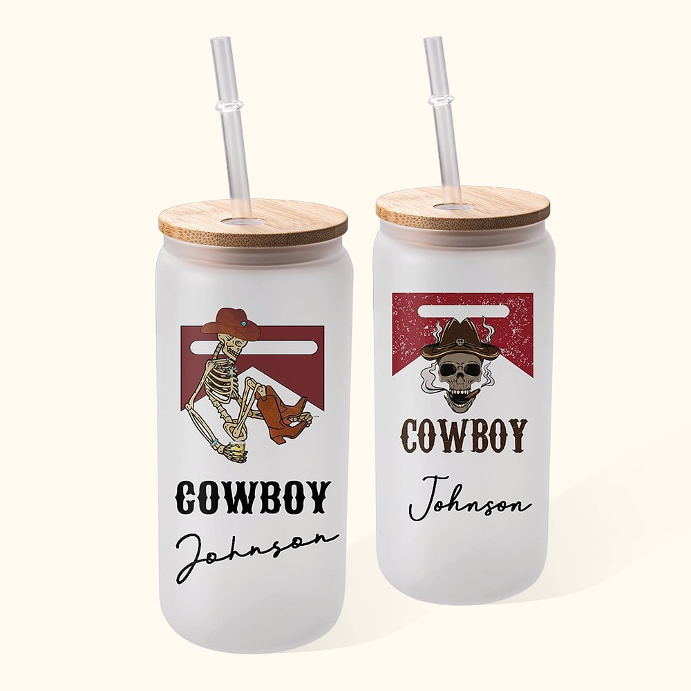 We use high-quality frosted glass material to make the cup feel better to hold. For design elements, we use a variety of cowboy-related patterns to give it a unique look and feel.