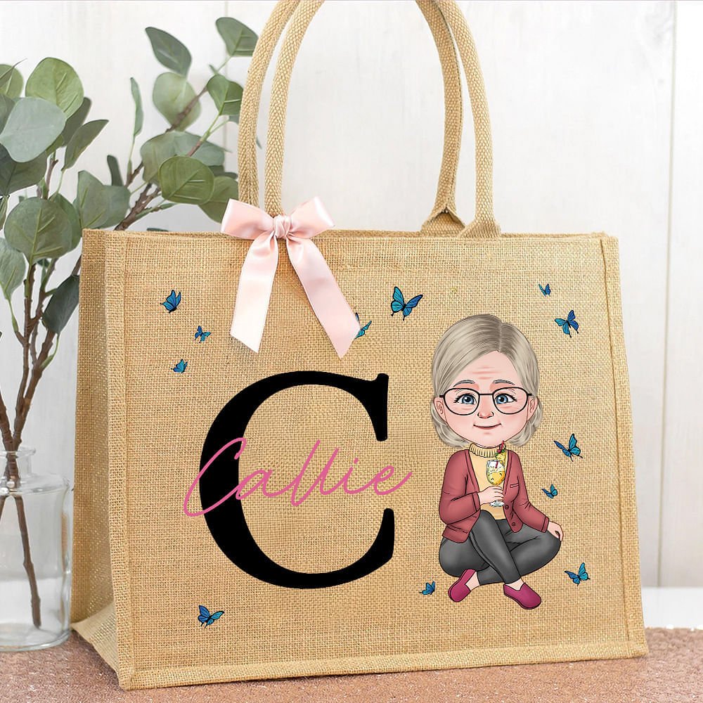This tote bag features a charming cartoon character design with butterflies, which can be customized with the recipient’s name, initials, and a special date. It’s a thoughtful way to celebrate a loved one, making each use of the bag a reminder of your affection.