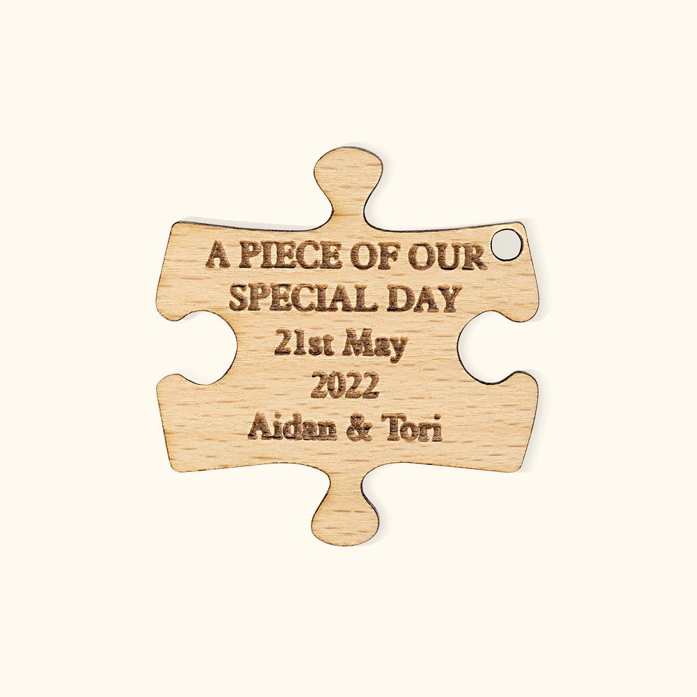 Puzzles and puzzle pieces are often used to symbolize the intricate and often convoluted paths our lives take. Finding true love is like putting that last puzzle piece into place! If you are looking to throw a wedding with a romantic theme, or just want to celebrate your achievement of solving the riddle of love, these puzzle piece wedding favors are perfect for you.