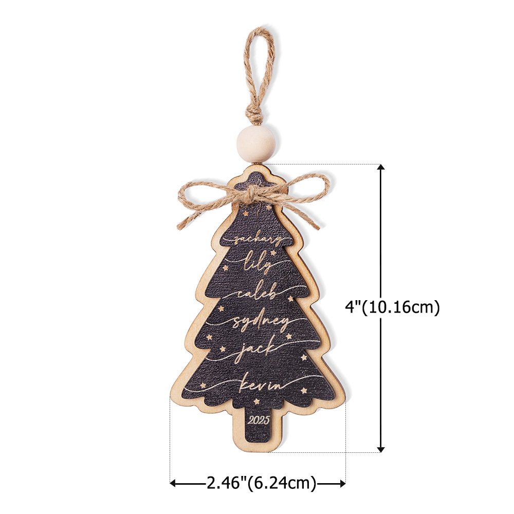 Personalised Wooden Christmas Tree Ornament with Engraved Year and 2-6 Names Christmas Tree Decor Gift for Family