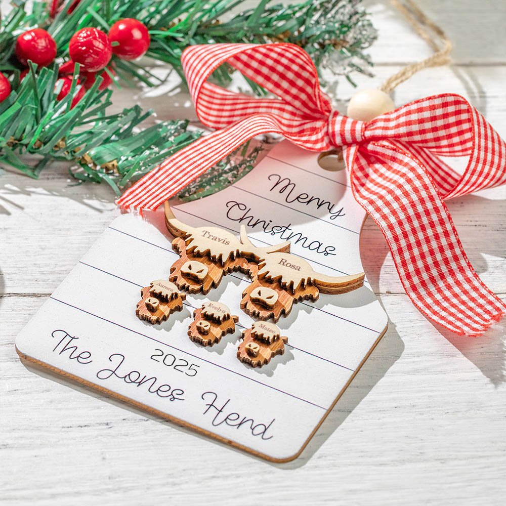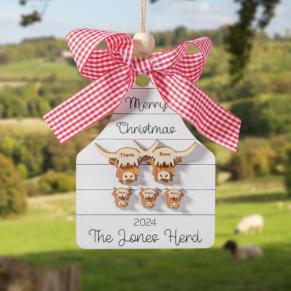 Personalised Wooden Family Christmas Ornament Farm Chickens Cows Pigs Deers Highland Cows